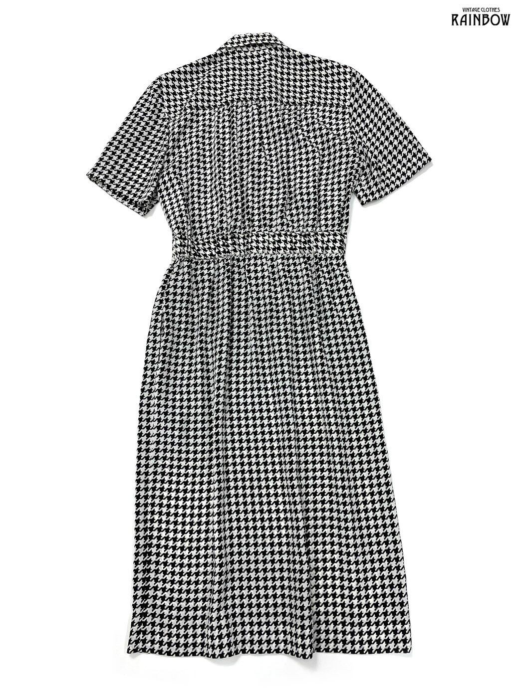 #ワンピース #ハーフスリーブ #ロング丈 #ウエスト切り替え #黒 #チェック柄 #千鳥格子柄 #半袖チェック柄ワンピース