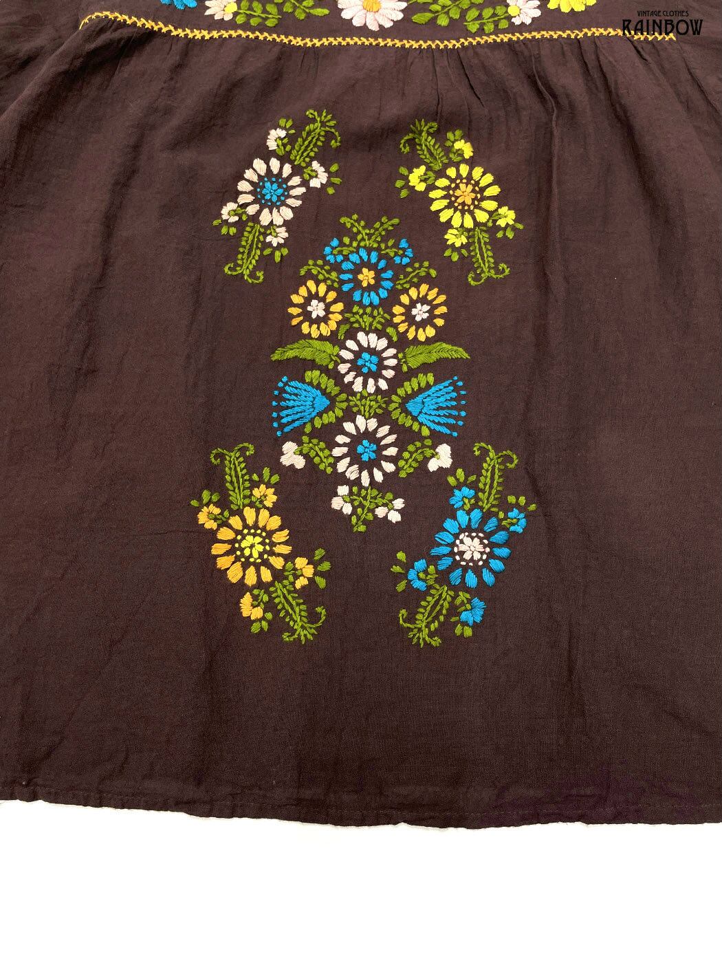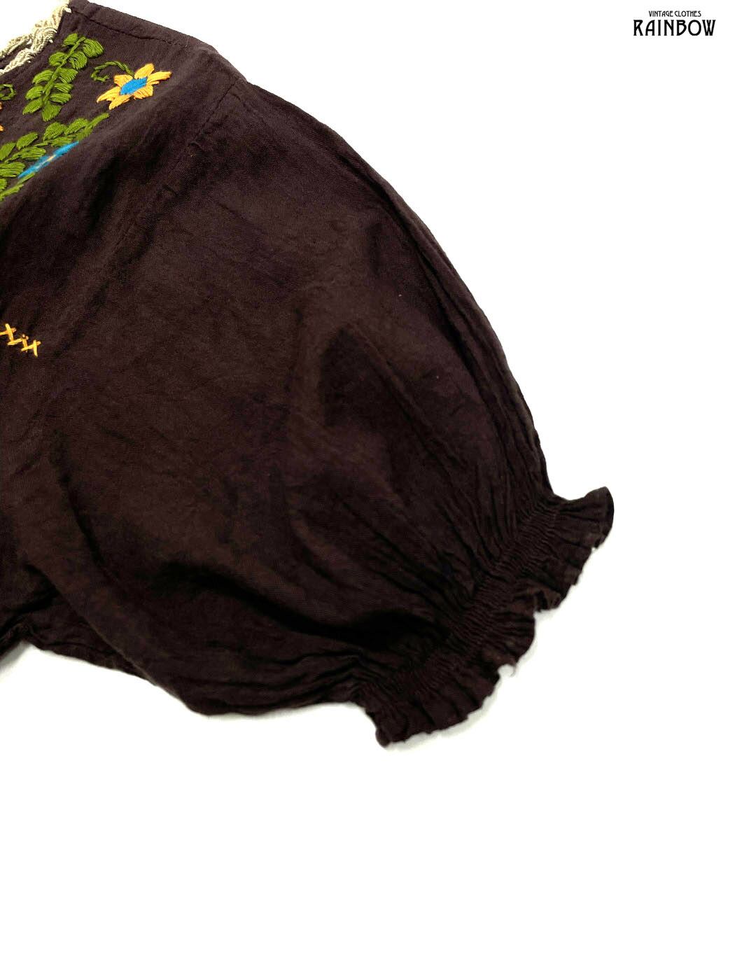 #ブラウス #bブラウス #ハーフスリーブ #茶 #花柄 #刺繍 #スリット #クラシック #コットン #半袖刺繍シャツ