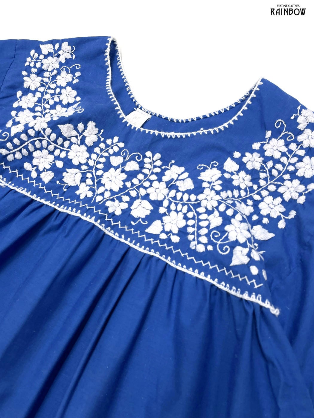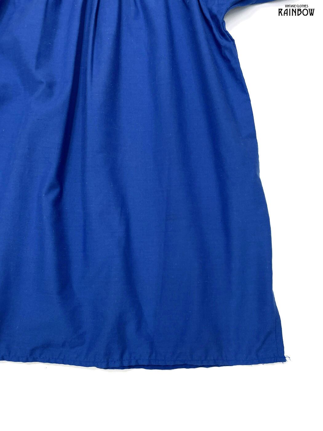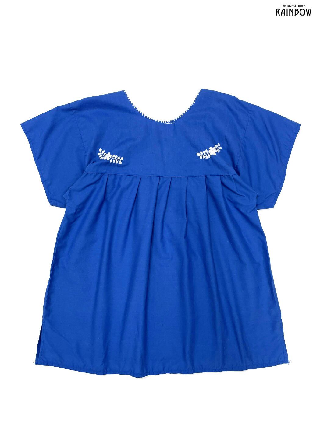 古着 刺繍 花柄 コットン 半袖 ブラウス 青 (ttu2407078)