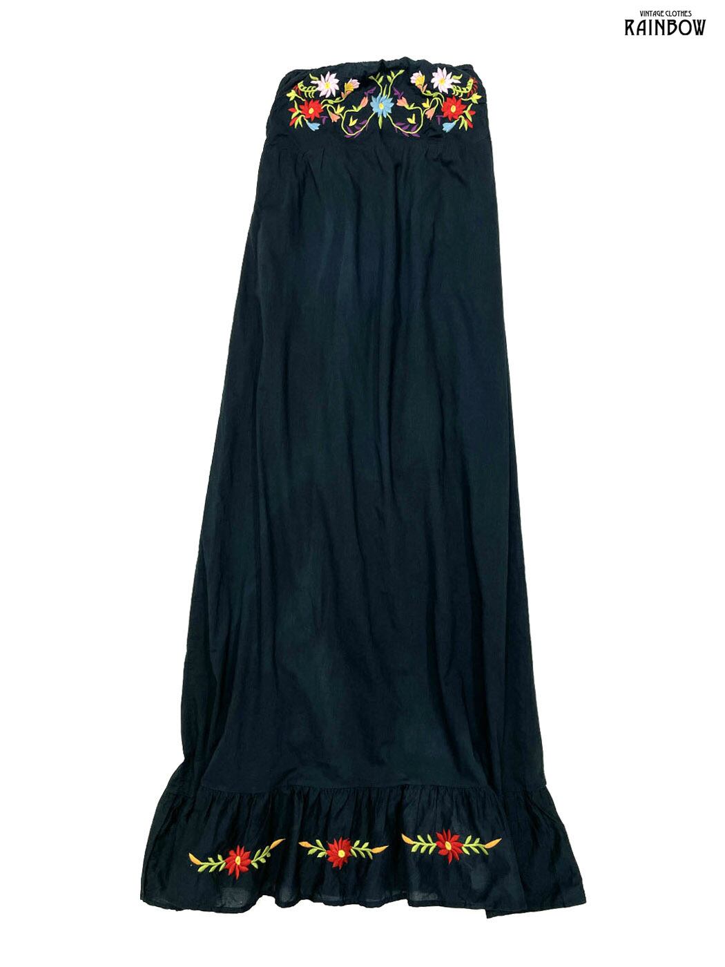 #ワンピース #ノースリーブ #ロング丈 #ティアード,#バスト切り替え #黒 #花柄 #刺繍 #ベアトップ #クラシック #コットン #刺繍ワンピース