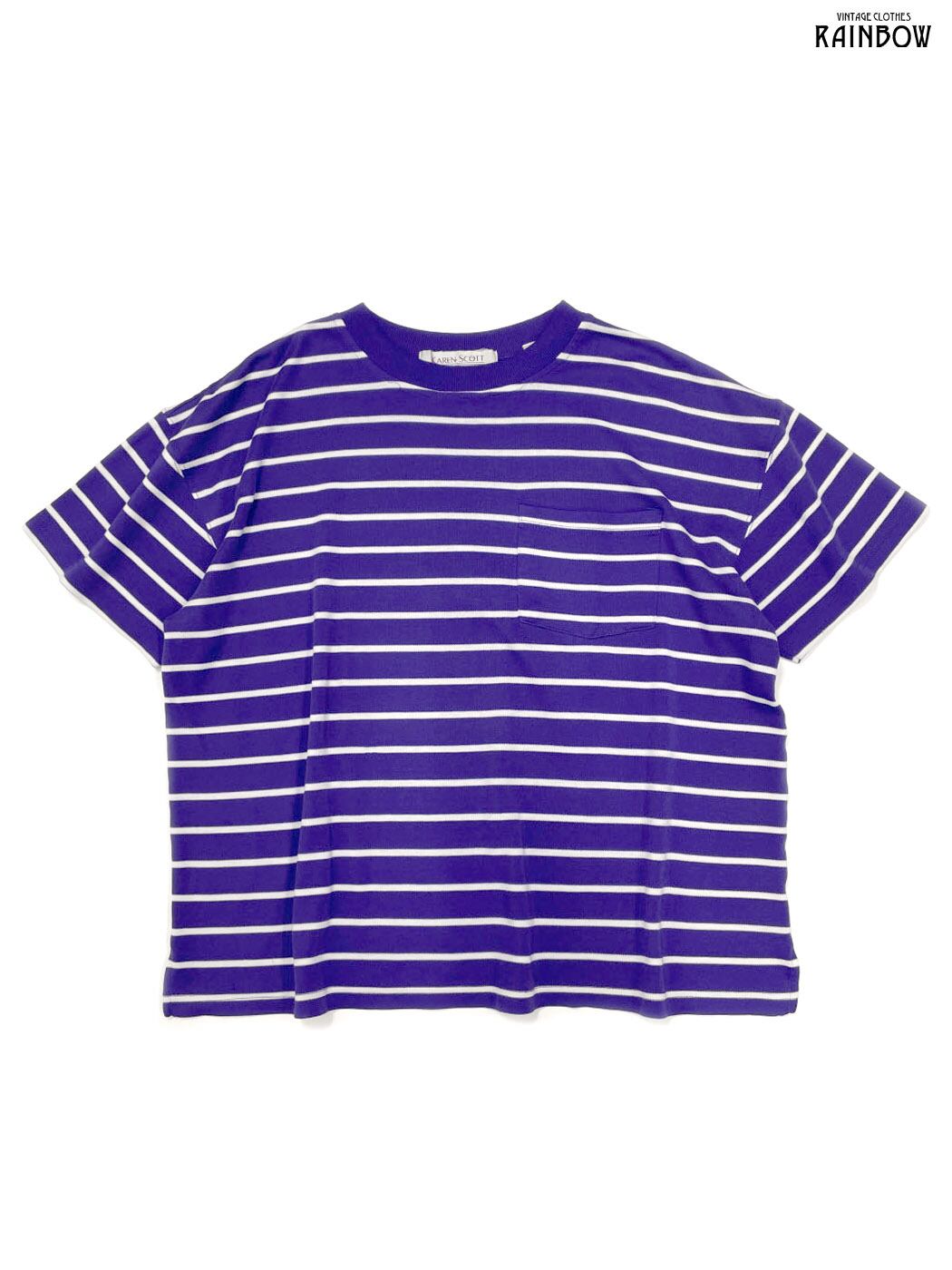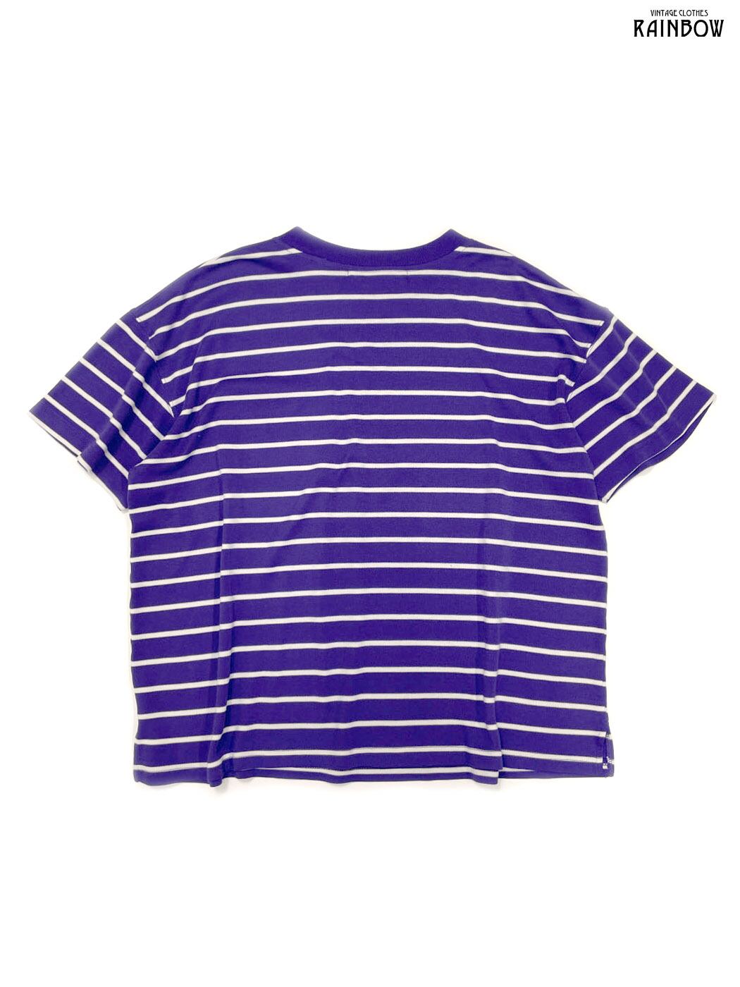 #トップス #Tシャツ #ハーフスリーブ #白 #紫 #ボーダー柄 #クラシック #コットン #半袖柄Tシャツ