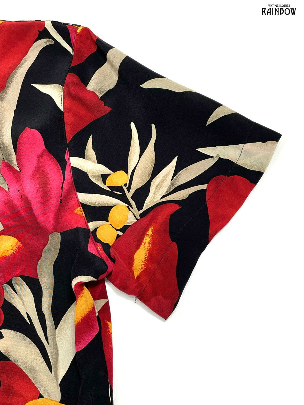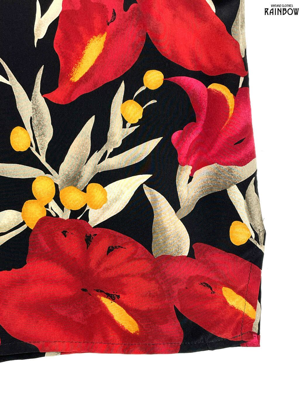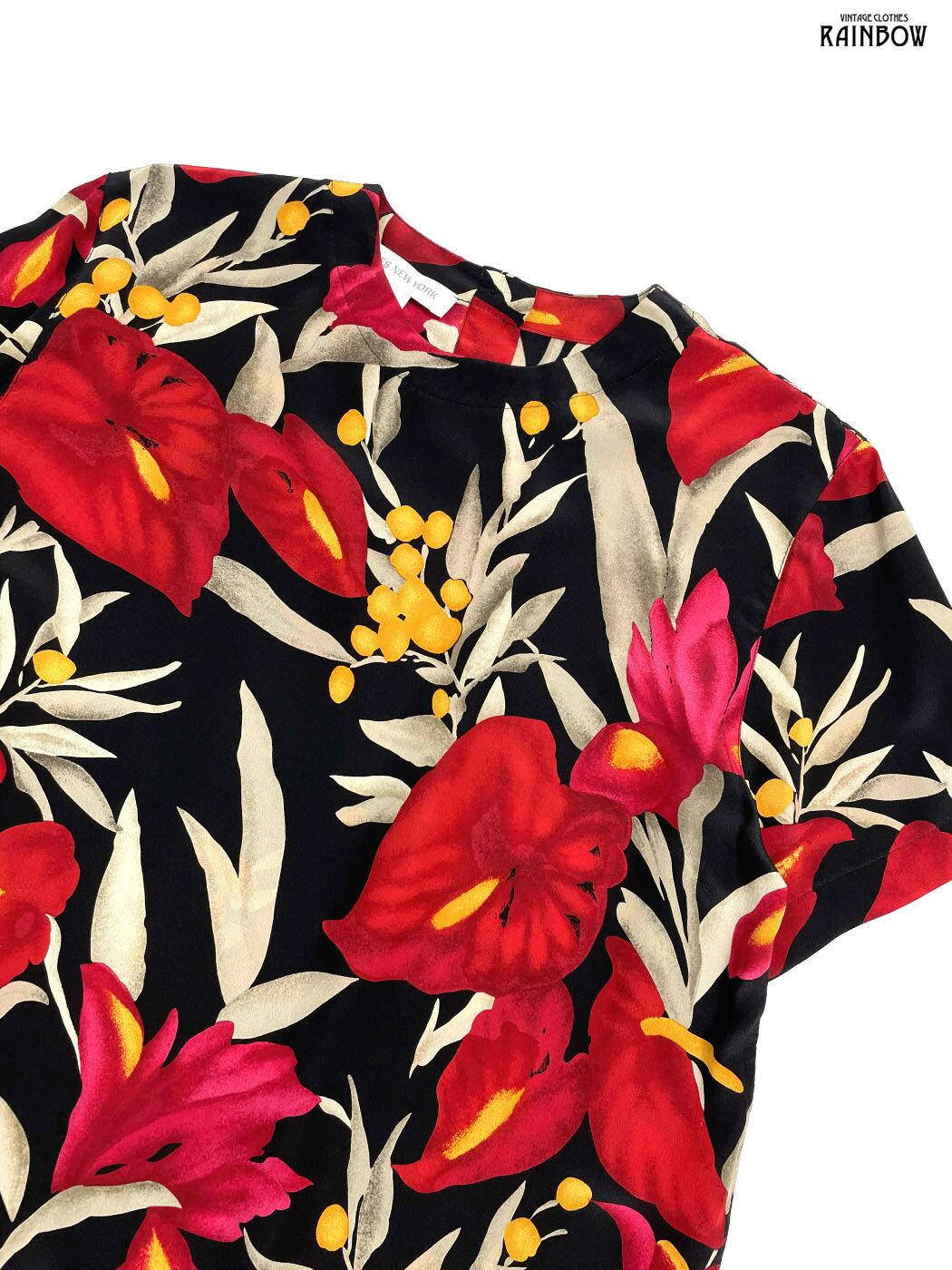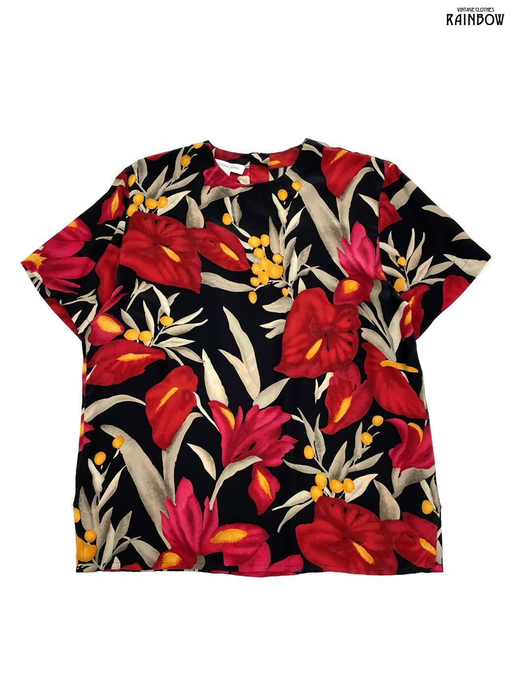 #ブラウス #bブラウス #ハーフスリーブ #黒 #赤 #花柄 #スリット #クラシック #シルク #半袖柄ブラウス