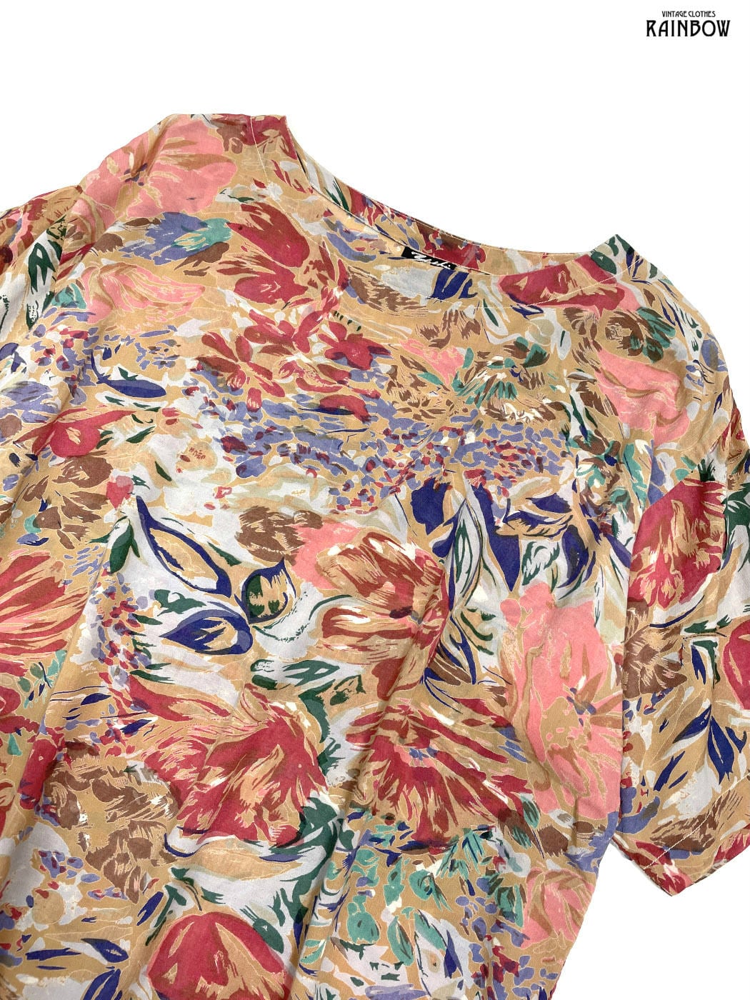 #ブラウス #bブラウス #ハーフスリーブ #赤 #ベージュ #花柄 #クラシック #コットン #レーヨン #半袖柄ブラウス