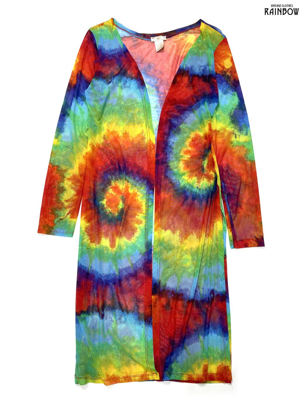 #アウター #羽織り #ロングスリーブ #オレンジ #カラフル #総柄 #タイダイ柄 #前開き #スリット #エスニック #柄羽織り