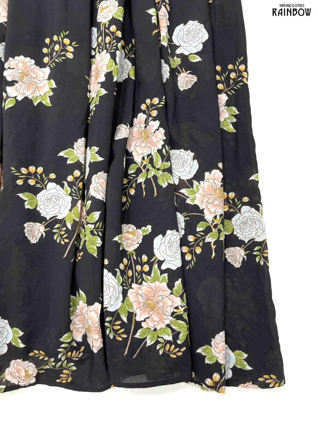 #ワンピース #キャミソール #ロング丈 #ウエスト切り替え #黒 #花柄 #クラシック #キャミソール花柄ワンピース