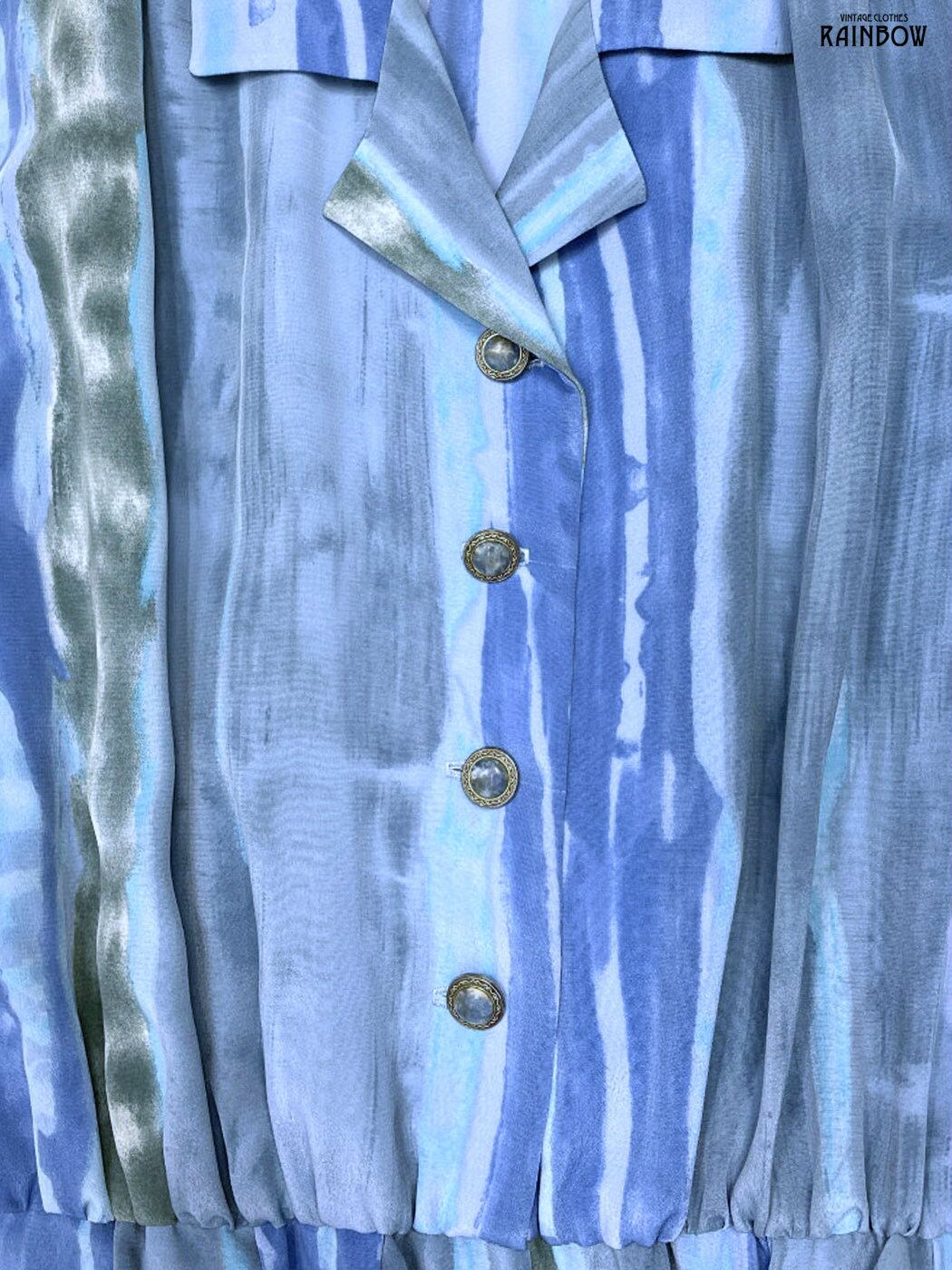 #ワンピース #ハーフスリーブ #ロング丈 #フレア #ゴムウエスト #ウエスト切り替え #青 #水色 #総柄 #水彩風 #オープンカラー #クラシック #半袖総柄ワンピース
