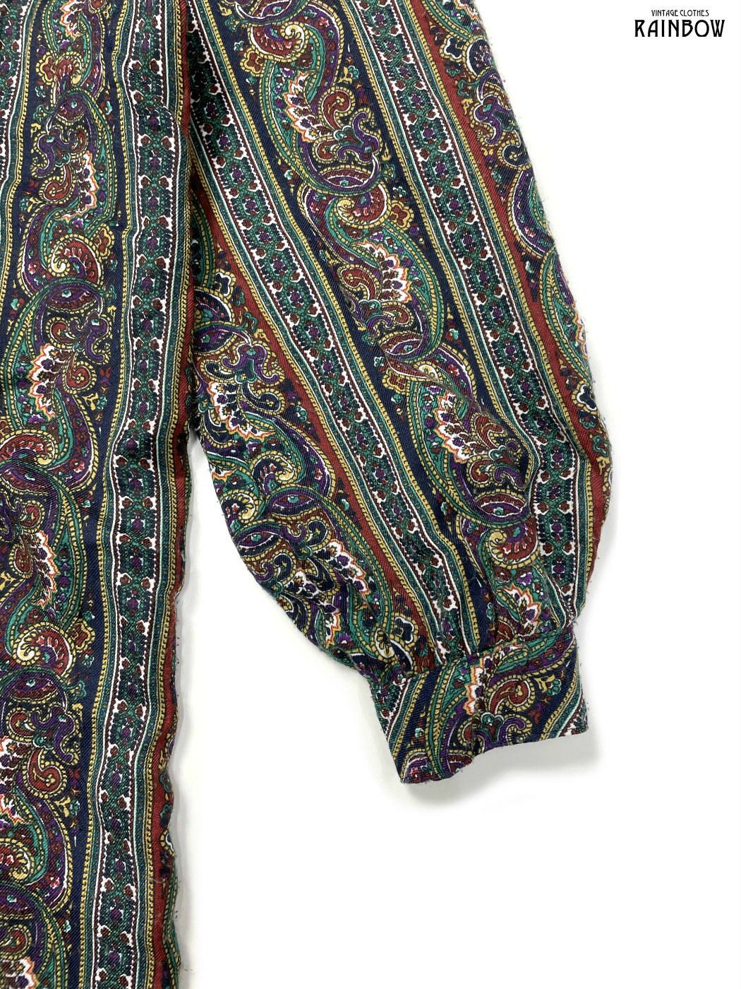 #ワンピース #ロングスリーブ #ロング丈 #ストレート #茶 #総柄 #ペイズリー柄 #クラシック #コットン #長袖総柄ワンピース