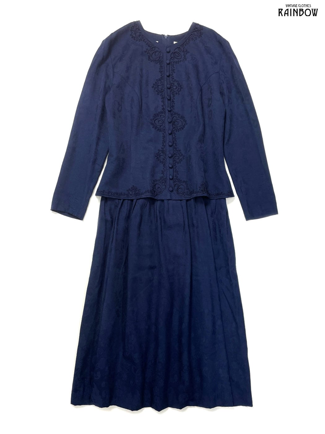 #ワンピース #ロングスリーブ #ロング丈 #ウエスト切り替え #紺 #無地 #刺繍 #刺繍ワンピース
