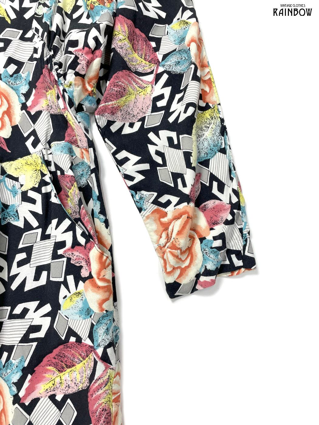 #ワンピース #ロングスリーブ #ロング丈 #ウエスト切り替え #黒 #花柄 #総柄 #アメリカ製 #クラシック #レーヨン #長袖花柄ワンピース