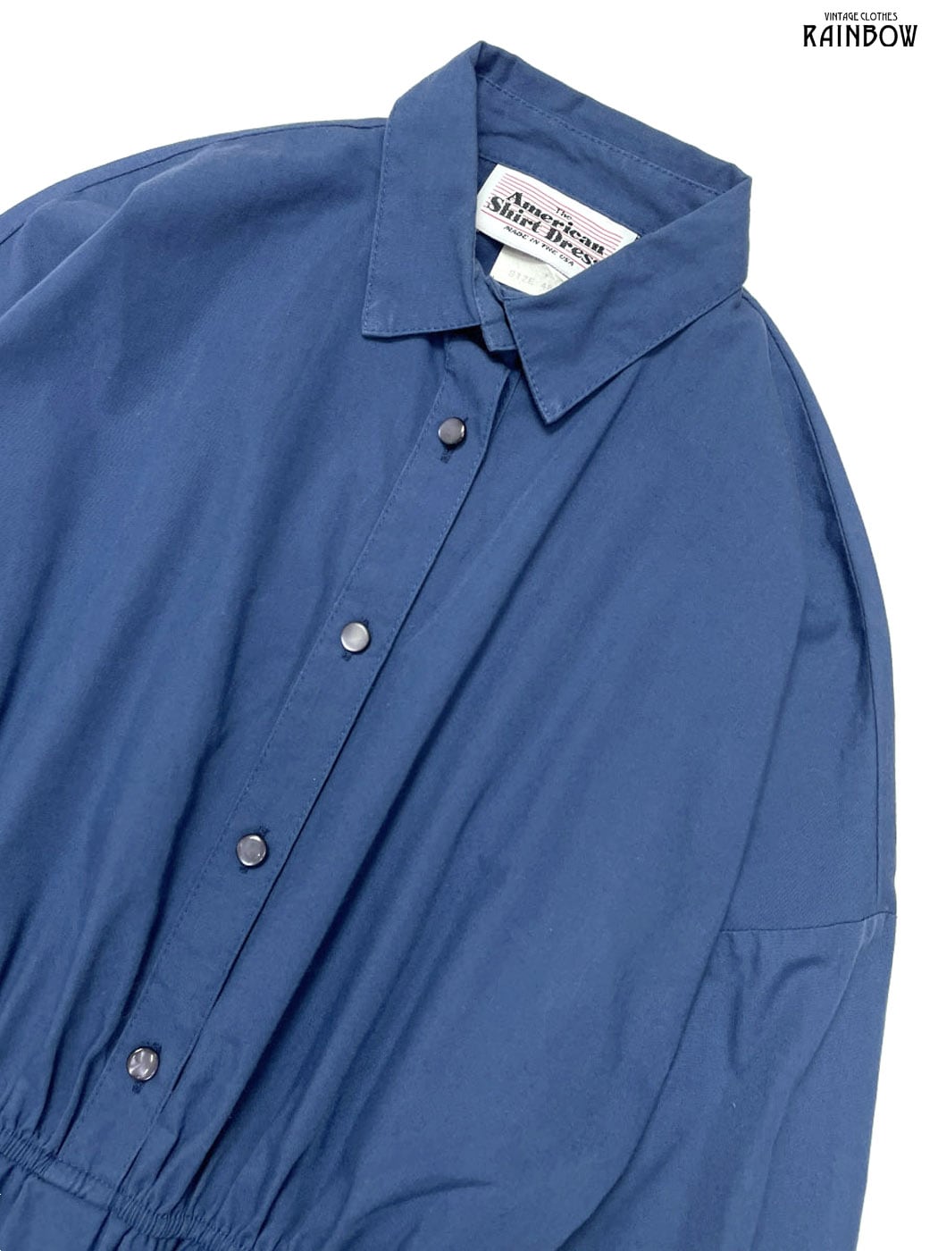 #ワンピース #ロングスリーブ #ロング丈 #ゴムウエスト #青 #無地 #アメリカ製 #シンプル #コットン #長袖無地ワンピース