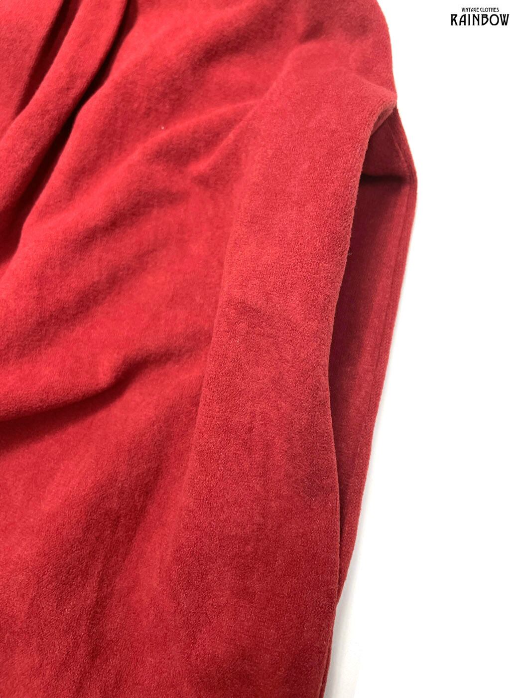 #ワンピース #ハーフスリーブ #ロング丈 #赤 #無地 #リボン #シンプル #スエード調 #半袖無地ワンピース