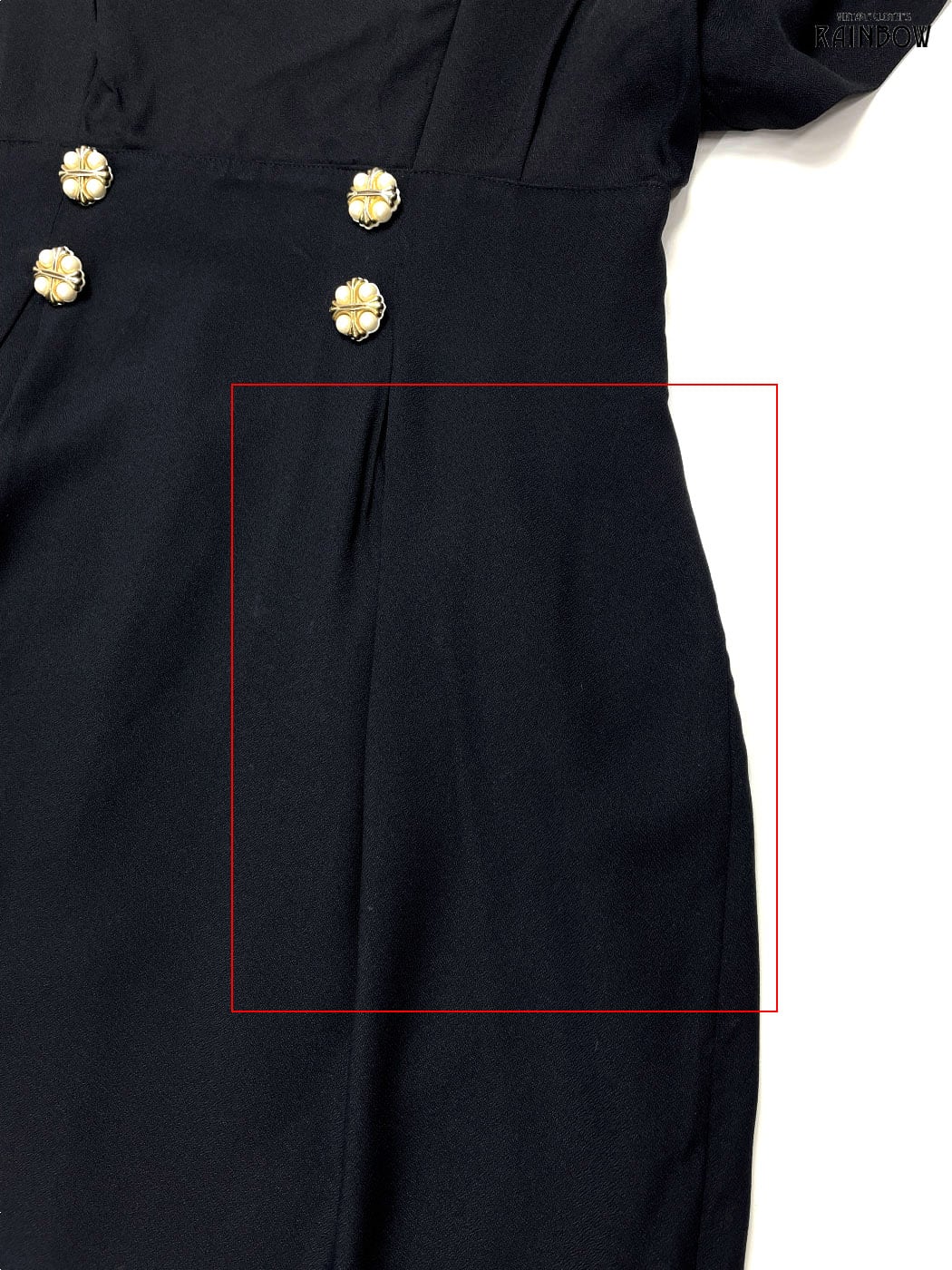 【コンディション:C】首元にシミ、スカートに白い汚れ、ワキに変色がございます。