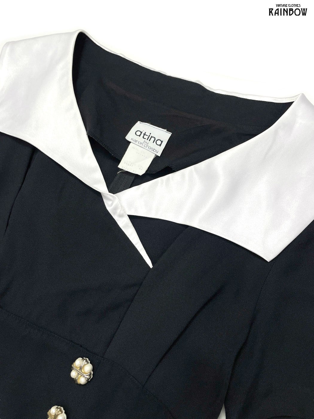 #ワンピース #ハーフスリーブ #膝丈 #フレア #ウエスト切り替え #黒 #無地 #アメリカ製 #ビジュー #ビッグカラー #セーラーカラー #クラシック #ナイロン #半袖無地ワンピース