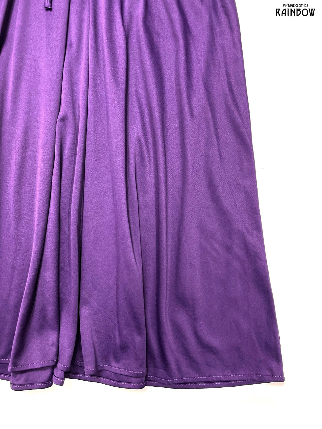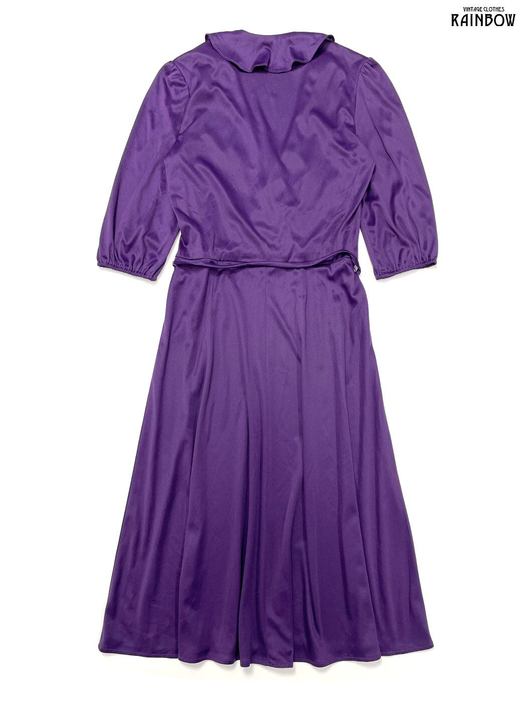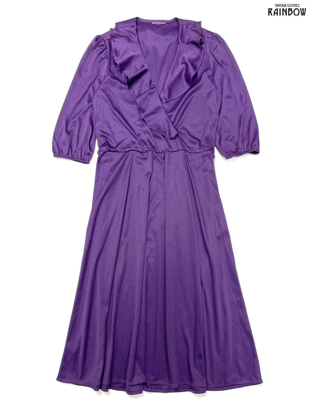 #ワンピース #ハーフスリーブ #ロング丈 #フレア #ゴムウエスト #ウエスト切り替え #紫 #無地 #フリル #リボン #ベルト付き #カシュクール #クラシック #半袖無地ワンピース
