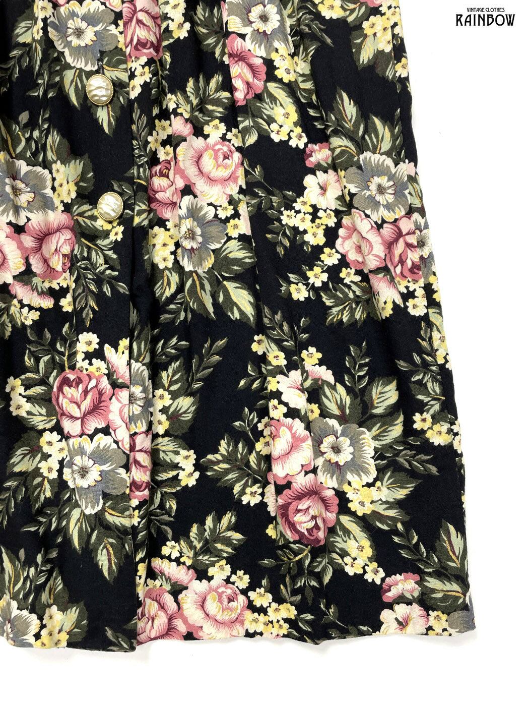 #ワンピース #ハーフスリーブ #ロング丈 #黒 #花柄 #レース #前開き #クラシック #レーヨン #半袖花柄ワンピース