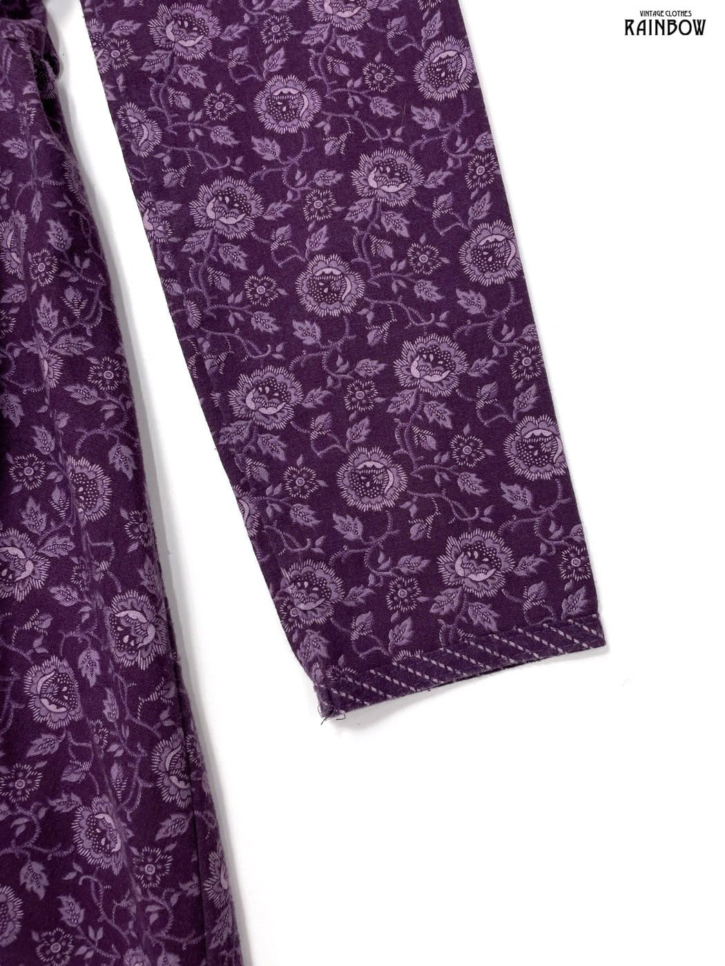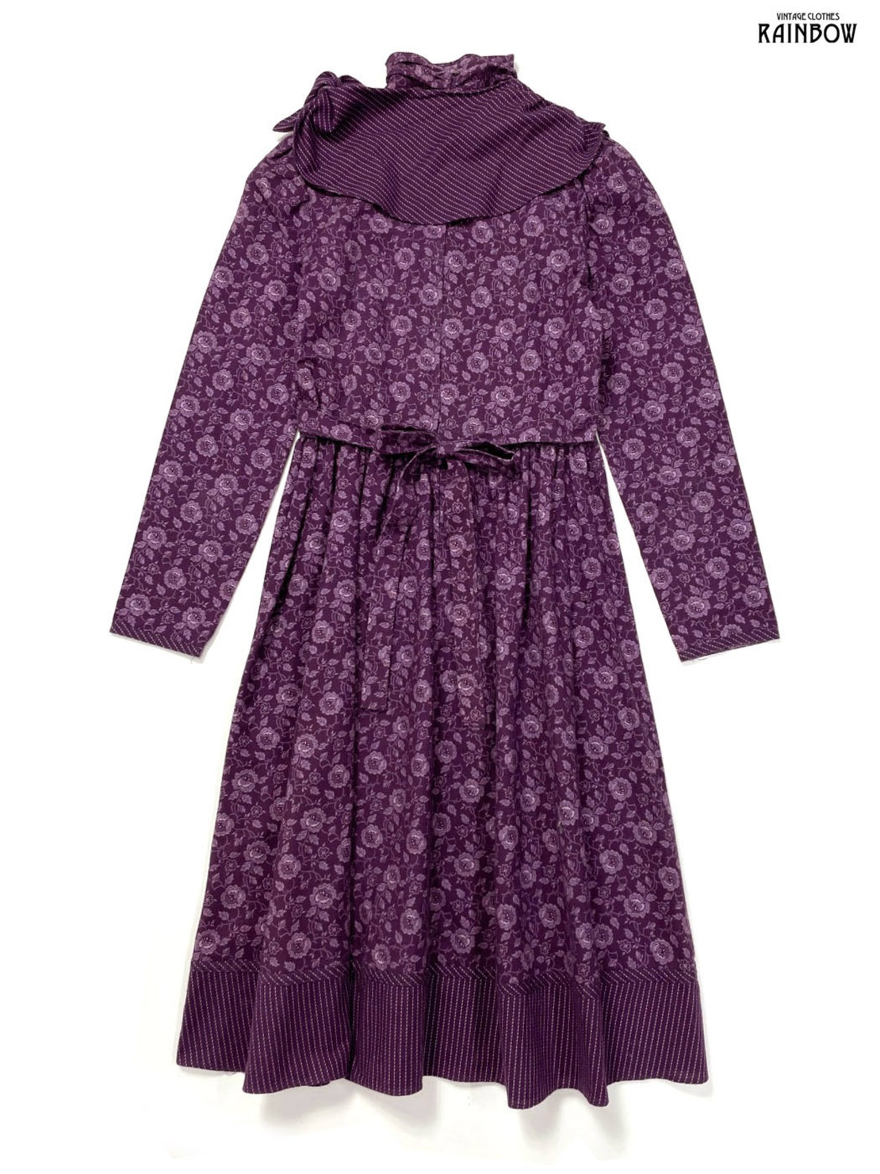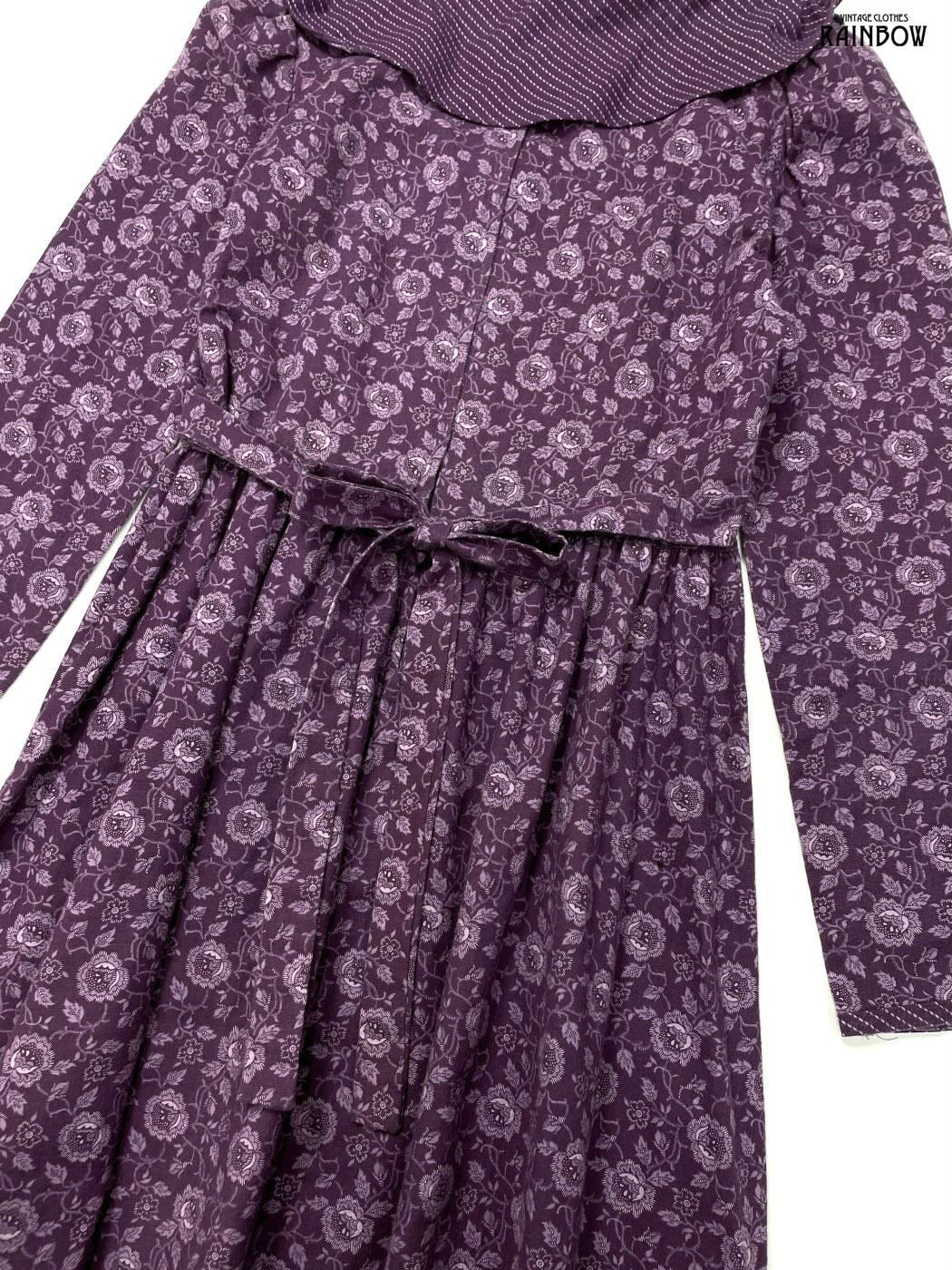 #ワンピース #ロングスリーブ #ロング丈 #フレア #ウエスト切り替え #紫 #花柄 #アメリカ製 #ハイネック #ビッグカラー #スカーフ風 #クラシック #コットン #長袖花柄ワンピース