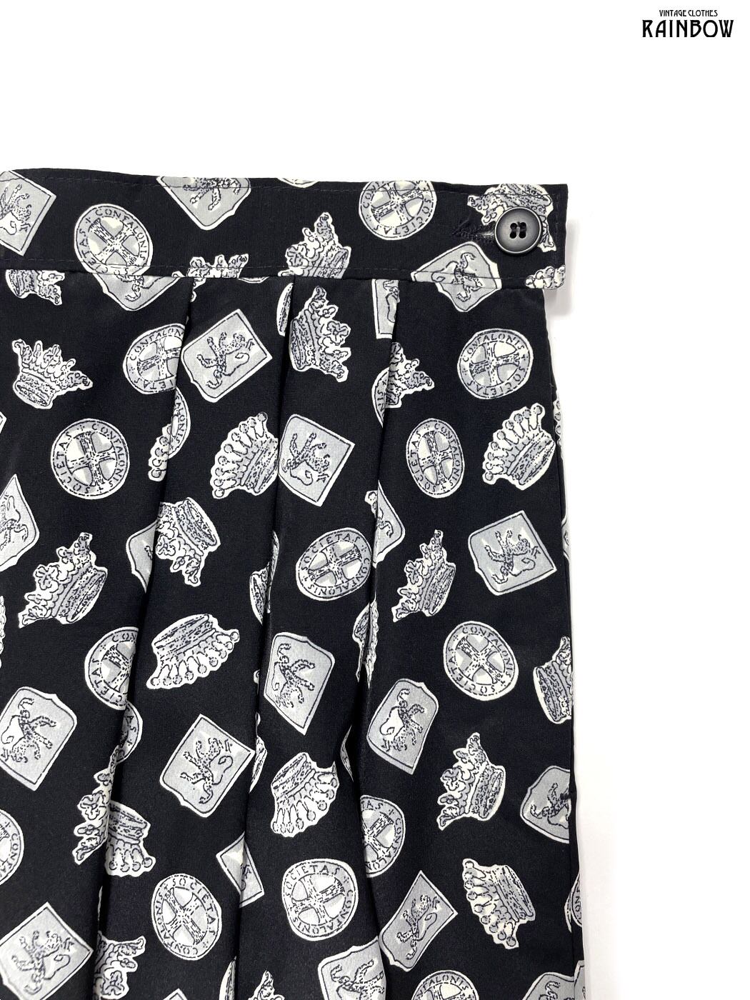 #スカート #ロング丈 #フレア #黒 #グレー #総柄 #王冠 #アメリカ製 #クラシック #柄スカート