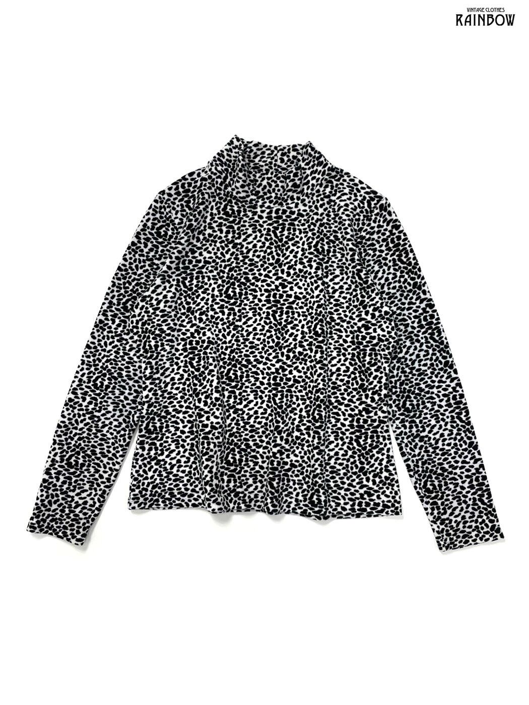 #トップス #プルオーバー #ロングスリーブ #グレー #総柄 ダルメシアン柄 #ハイネック #ベロア #長袖柄プルオーバー