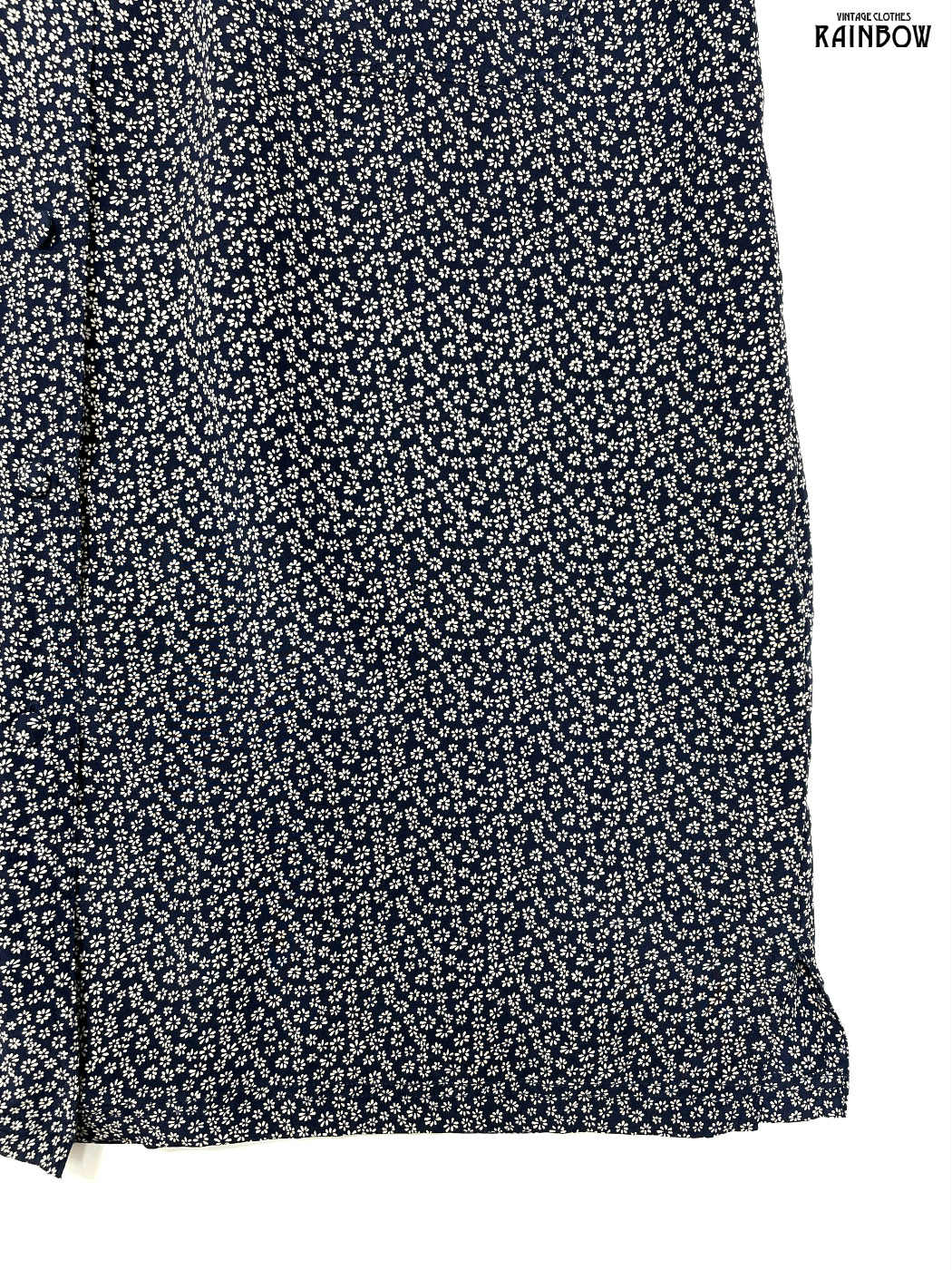 #ブラウス #シャツ #ロングスリーブ #紺 #花柄 #前開 #スリット #テーラードカラー #クラシック #シルク #シルクシャツ