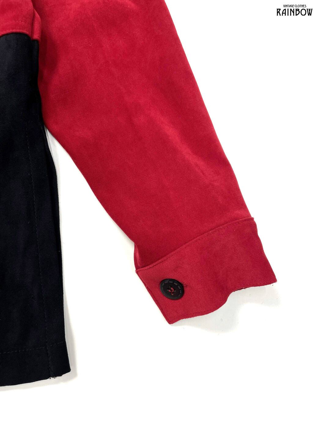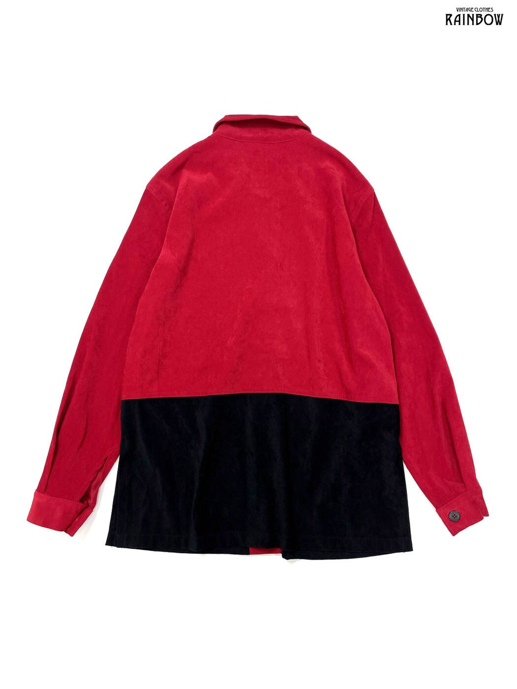 #ブラウス #シャツ #ロングスリーブ #黒 #赤 #無地 #バイカラー #前開き #スリット #ヴィンテージ #スエード調 #フェイクスエードシャツ