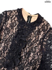 #ワンピース #ロングスリーブ #膝丈 #フレア #ウエスト切り替え #黒 #花柄 #レース #襟付き #ヴィンテージガーリー #クラシック #総レース #総レースワンピース