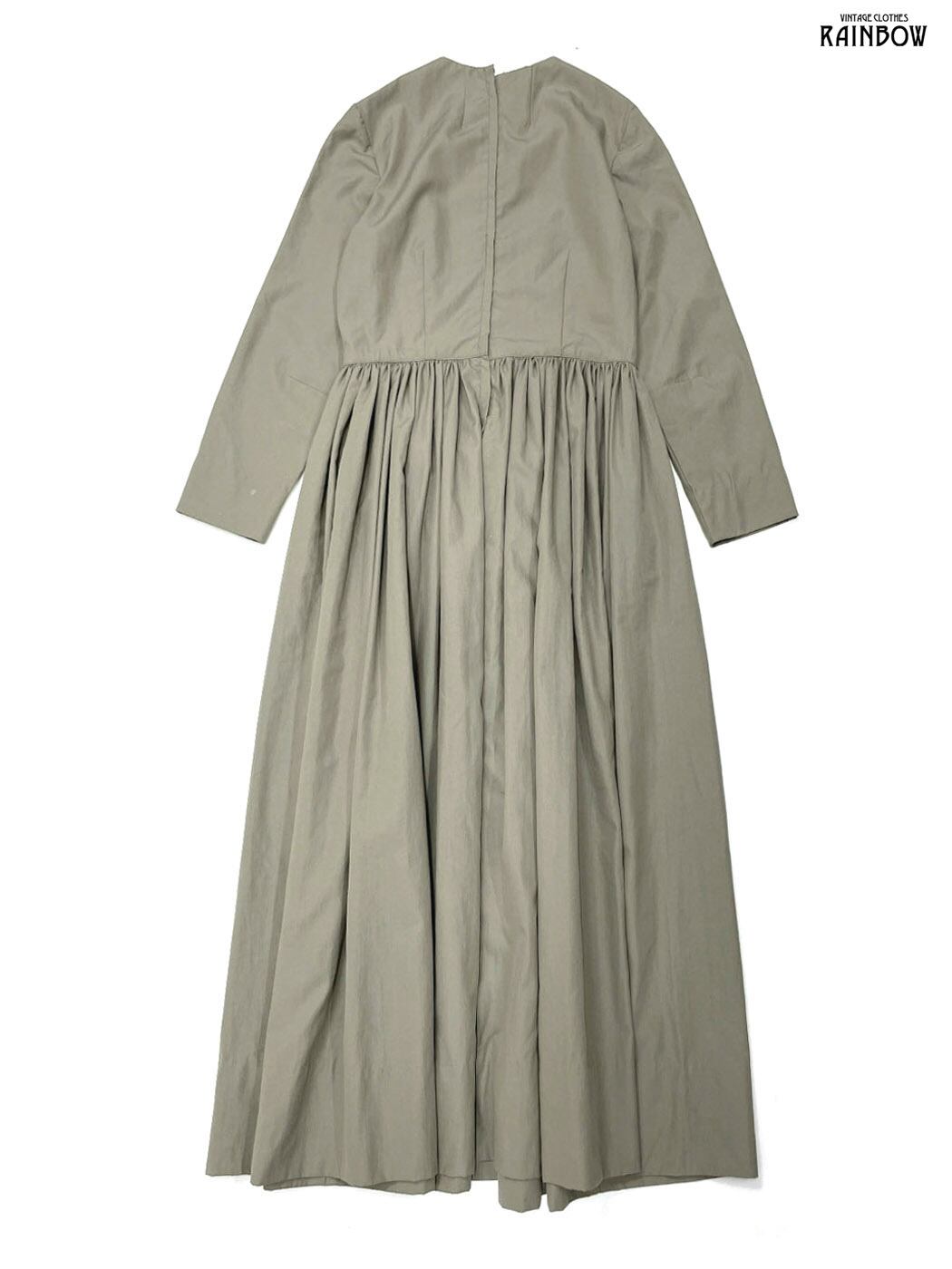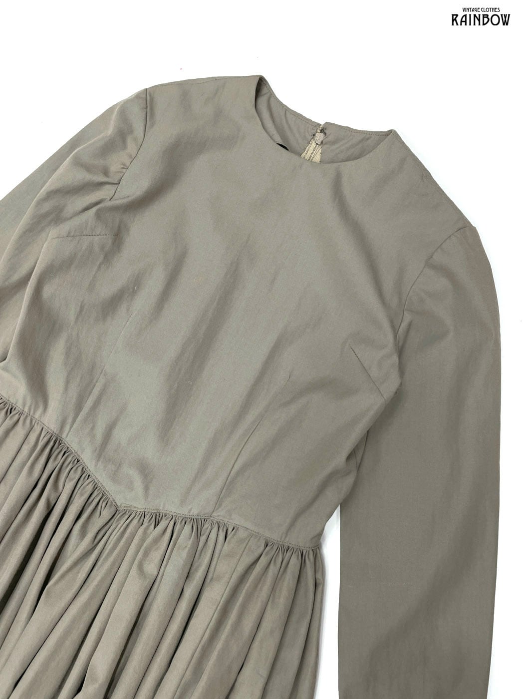 #ワンピース #ロングスリーブ #ロング丈 #ウエスト切り替え #ベージュ #カーキ #無地 #TALONジップ #シンプル #コットン #長袖無地ワンピース