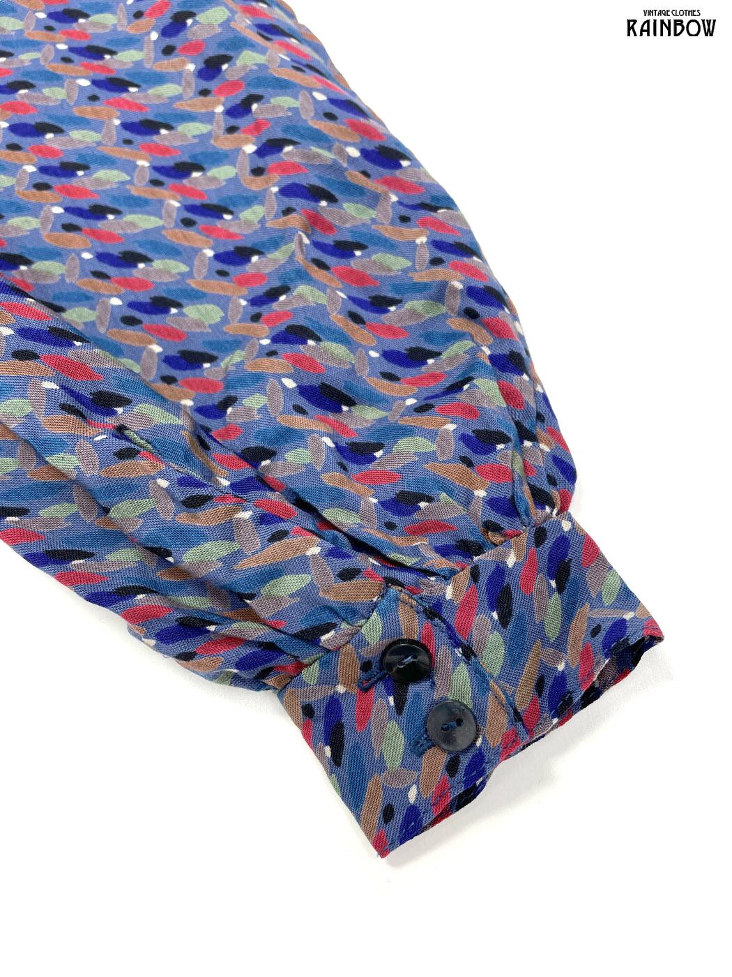 #ブラウス #bブラウス #ロングスリーブ #青 #総柄 #前開き #クラシック #コットン #柄シャツ