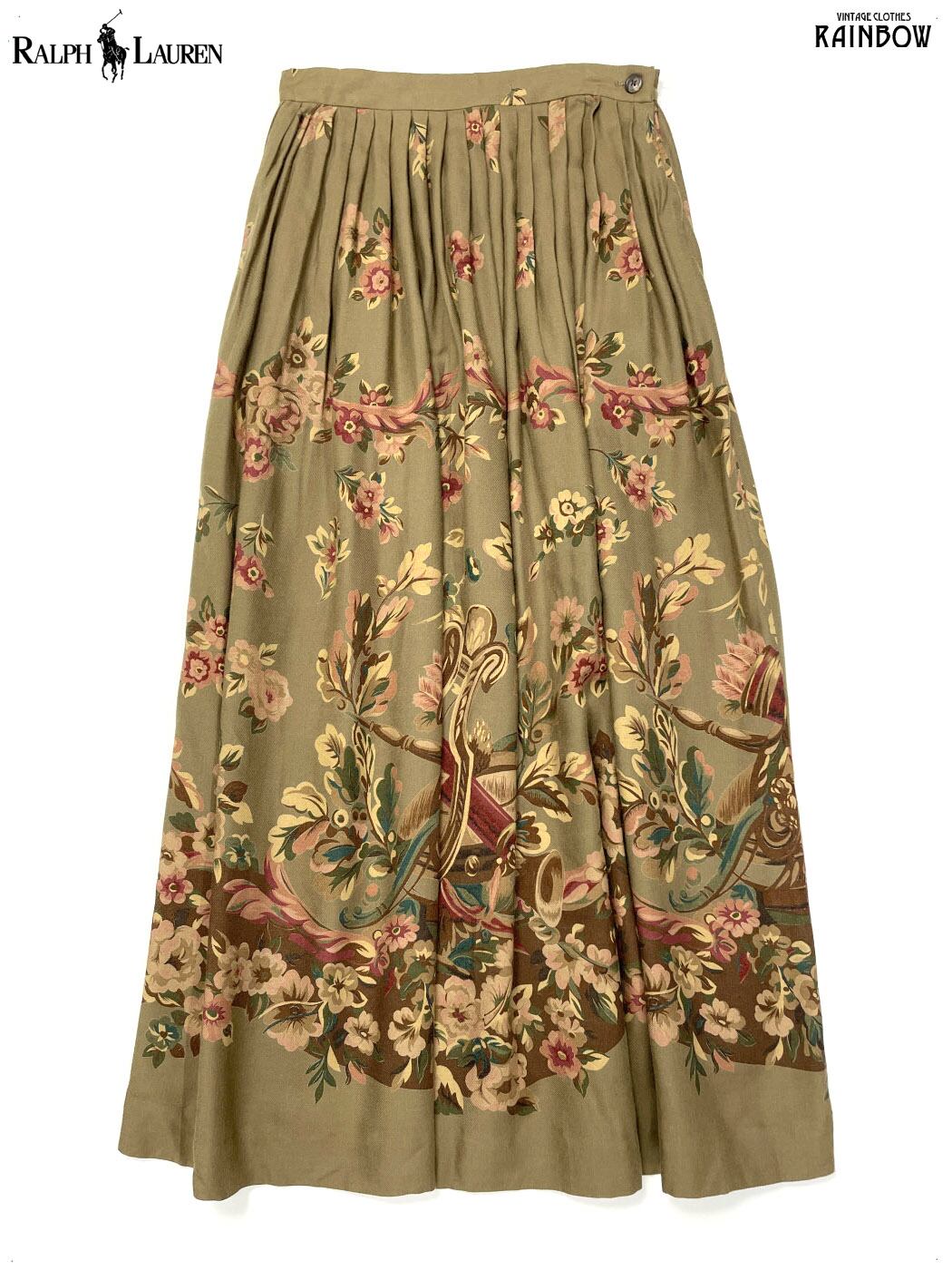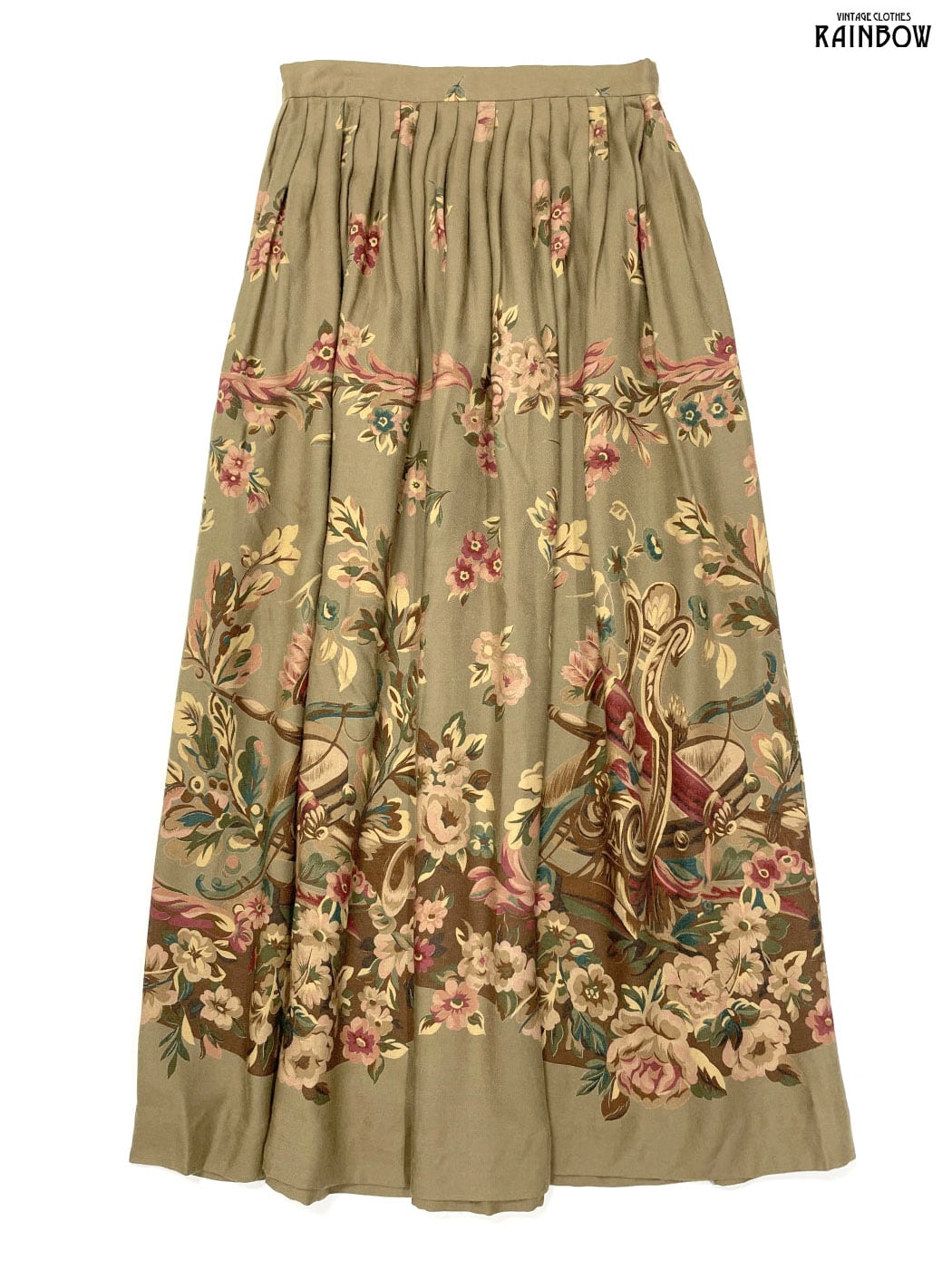 #スカート #ロング丈 #茶 #カーキ #花柄 #クラシック #ウール #レーヨン #秋冬柄スカート