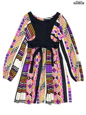 #ワンピース #ロングスリーブ #膝丈 #フレア #ウエスト切り替え #黒 #ピンク #総柄 #リボン #クラシック #長袖総柄ワンピース