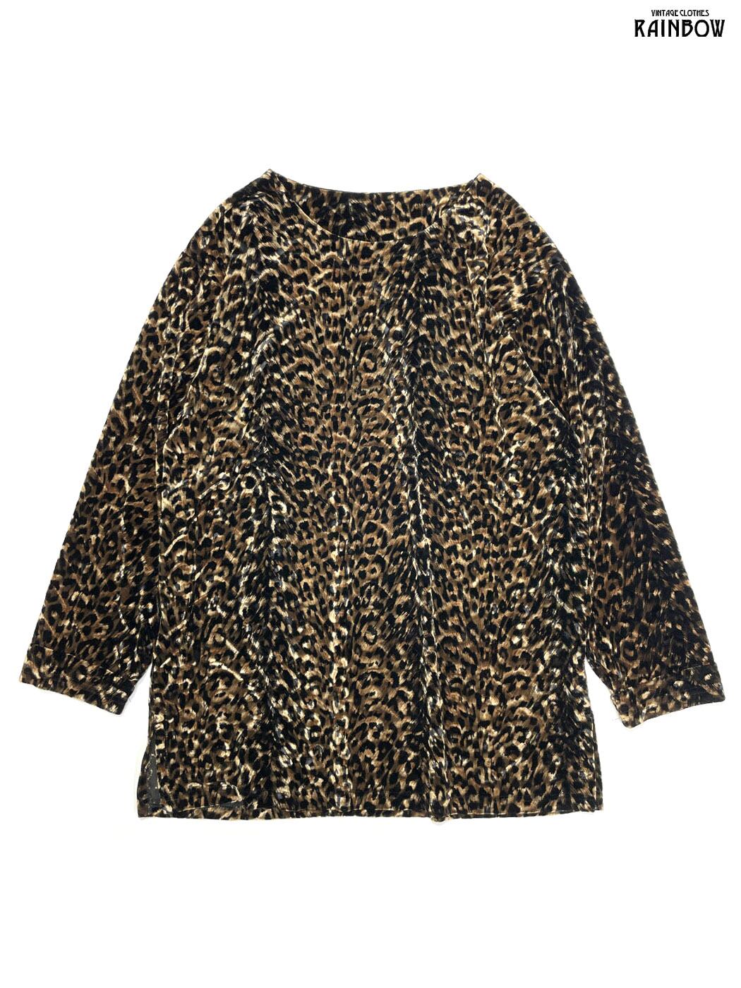 #トップス #プルオーバー #ロングスリーブ #黒 #ベージュ #総柄 #レオパード柄 #スリット #ヴィンテージ #ベロア #長袖柄プルオーバー