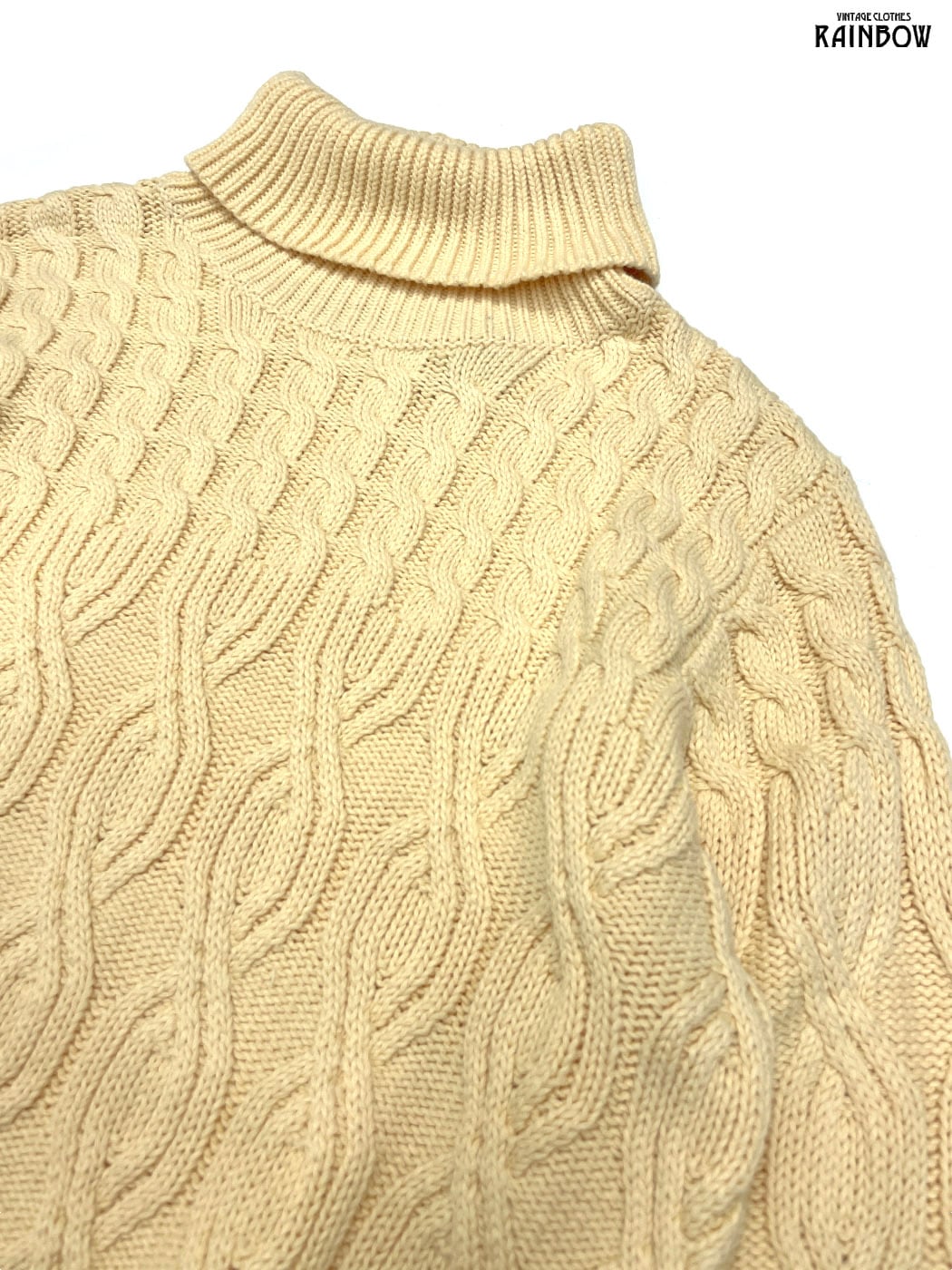 #ニット #セーター #ロングスリーブ #黄 #無地 #ハイネック ケーブル編み #ガーリー #シンプル #コットン #ニット地 #無地セーター