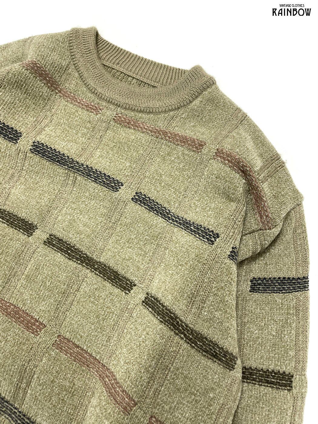 #ニット #セーター #ロングスリーブ #ベージュ #チェック柄 #ニット地 #柄セーター