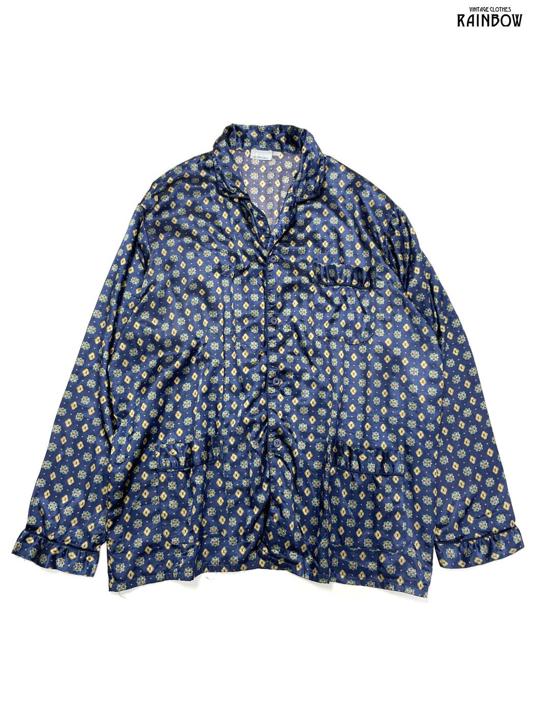 #ブラウス #シャツ #ロングスリーブ #紺 #総柄 #クラシック #サテン #柄シャツ
