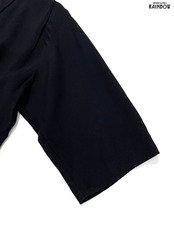 #ワンピース #ハーフスリーブ #ロング丈 #フレア #ウエスト切り替え #黒 #無地 #スキッパー #シンプル #ブラックワンピース #スカラップ