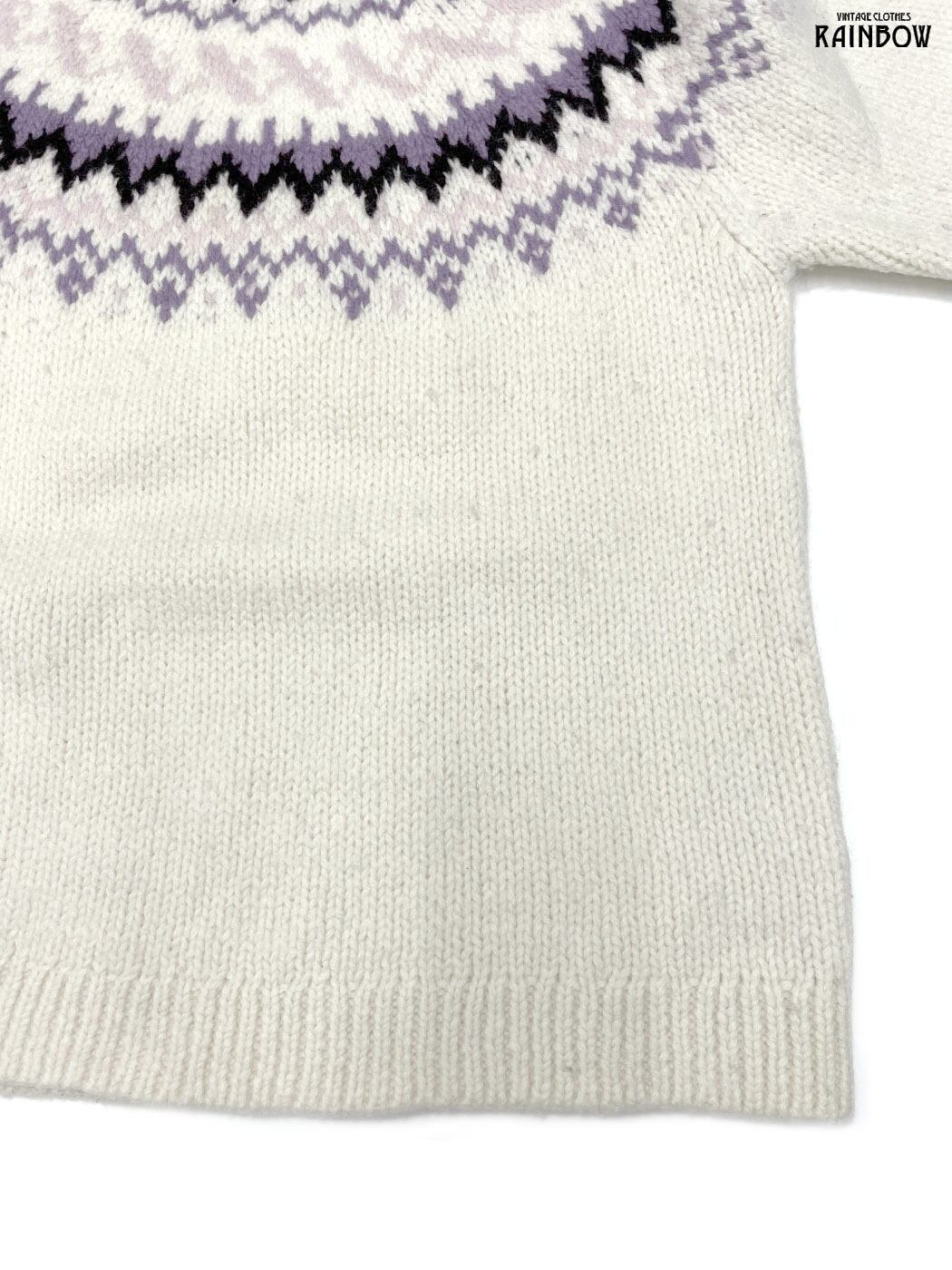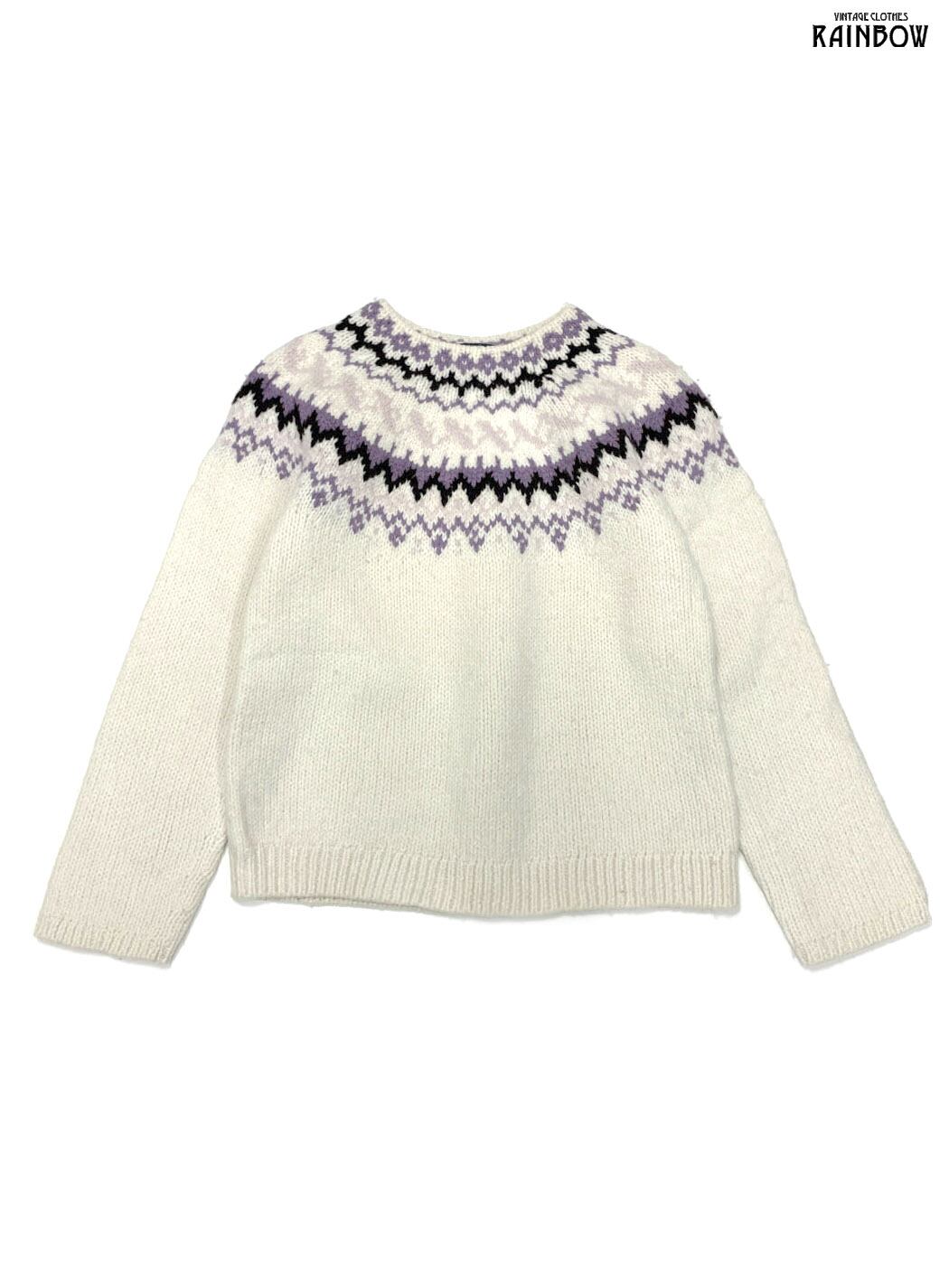 #ニット #セーター #ロングスリーブ #白 #紫 #総柄 #ノルディック柄 #ガーリー #ウール #