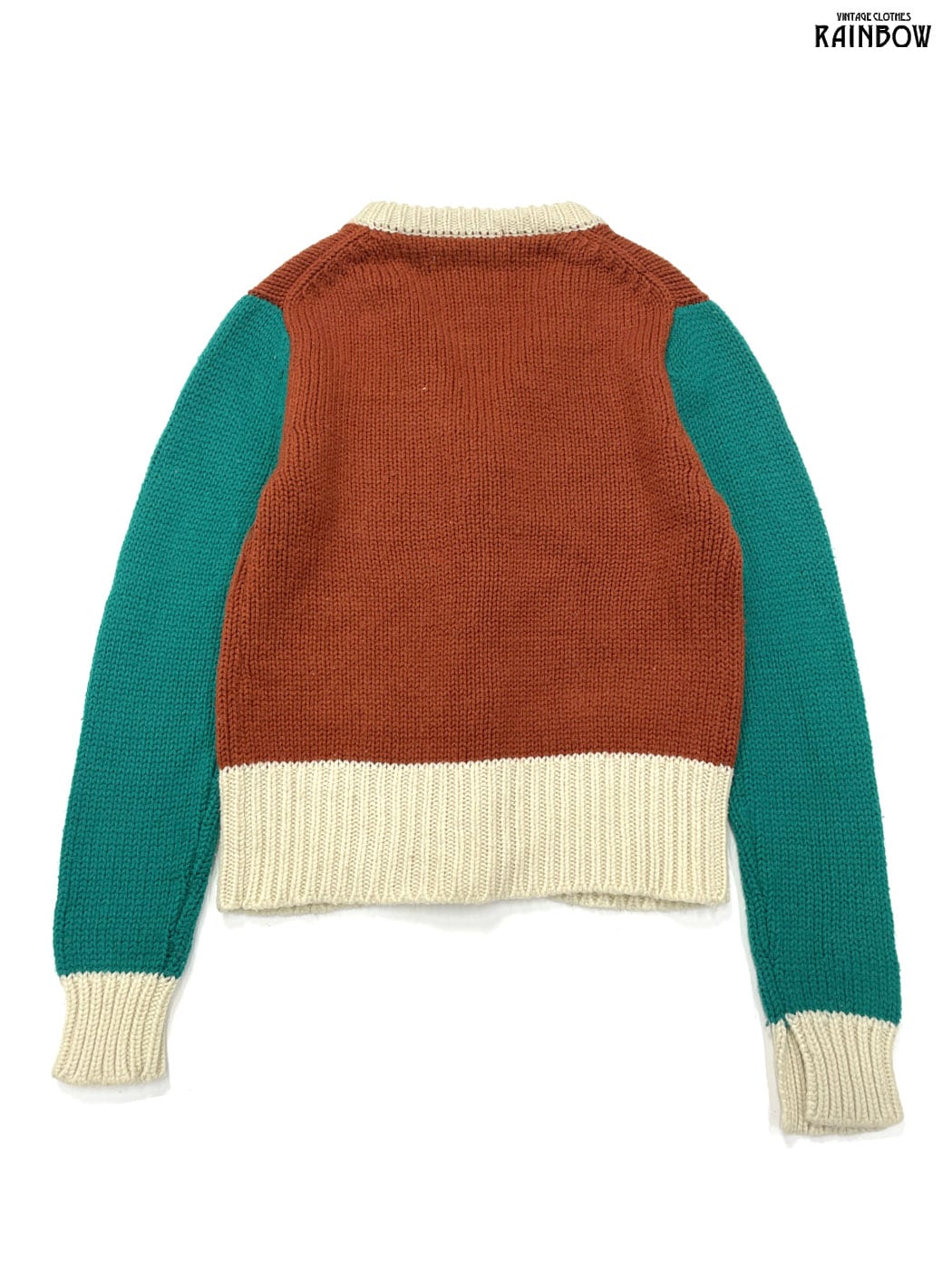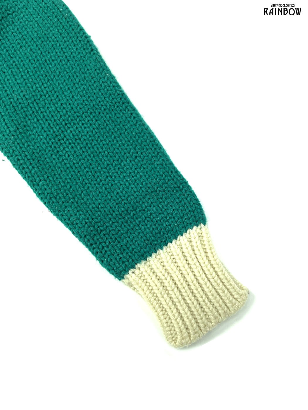 古着 インコ 前開き 総柄 アニマル 長袖 ニット Vネック カーディガン 茶 緑 (ttu2410207)