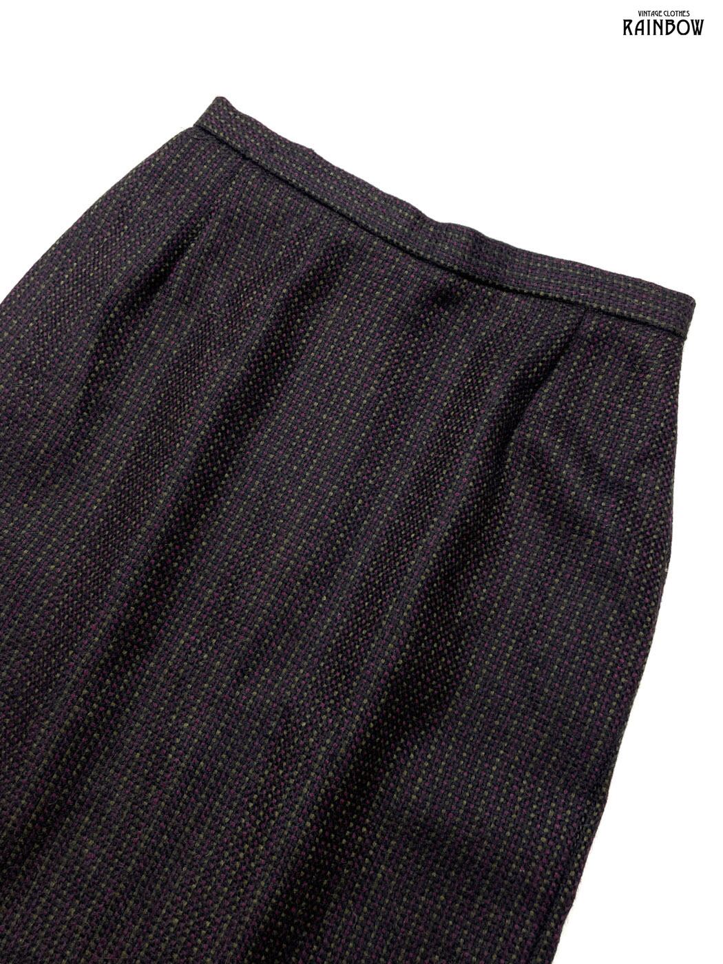#スカート #膝丈 #タイト #茶 #チェック柄 #スリット #ユニオンメイド #ウール #秋冬チェック柄スカート
