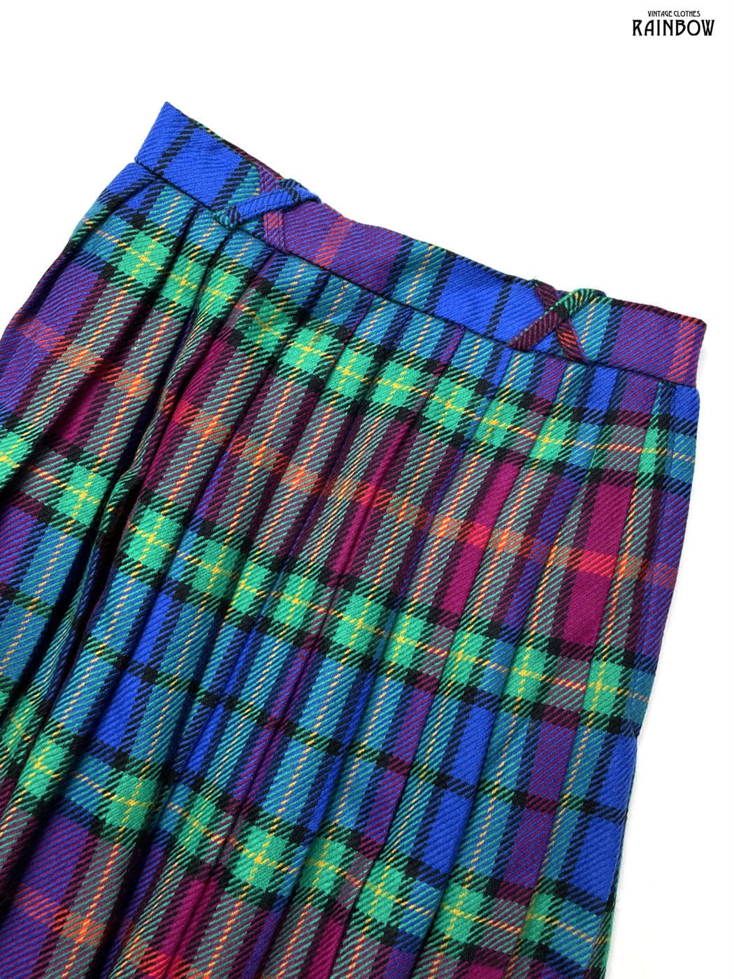 #スカート #膝丈 #青 #チェック柄 #ウール #ピュアウール #秋冬チェック柄スカート #プリーツ