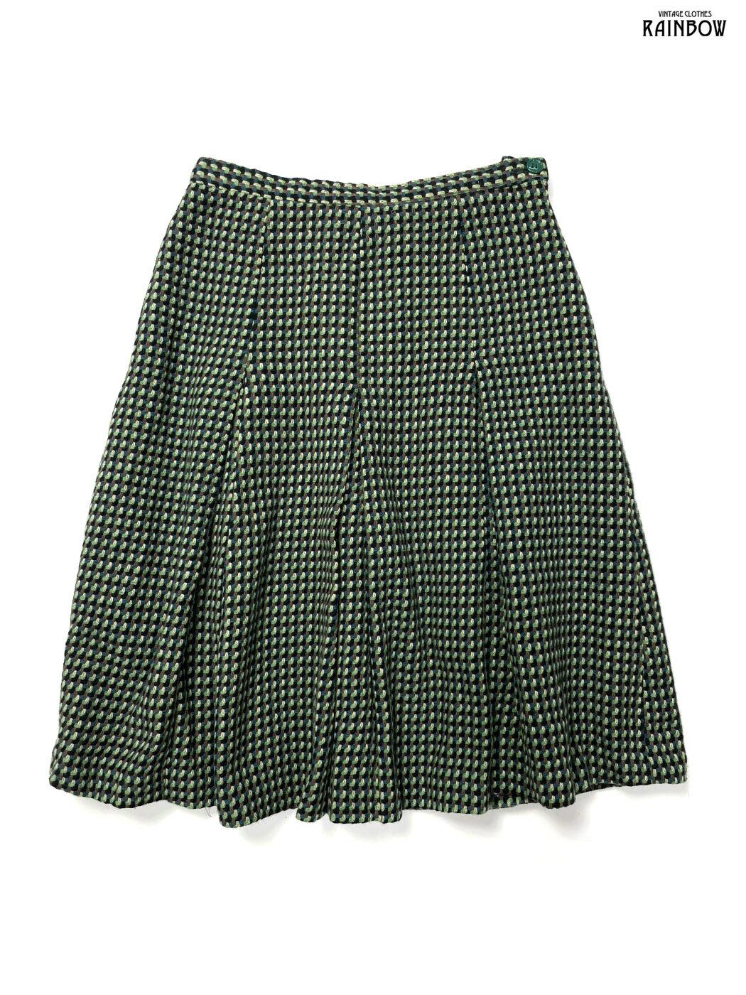 #スカート #膝丈 #フレア #緑 #チェック柄 #ウール #秋冬チェック柄スカート