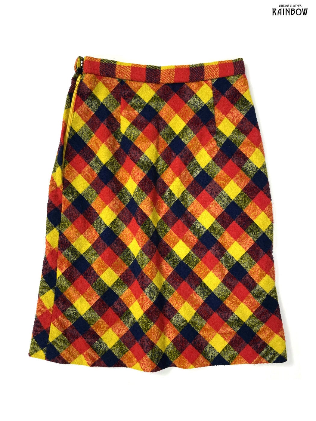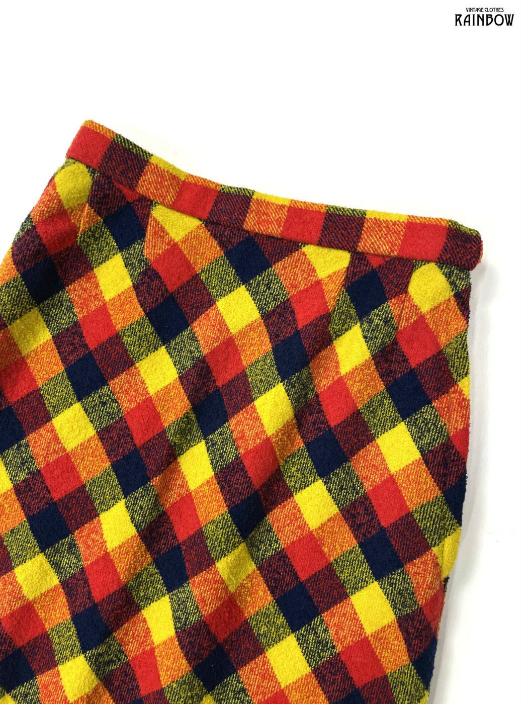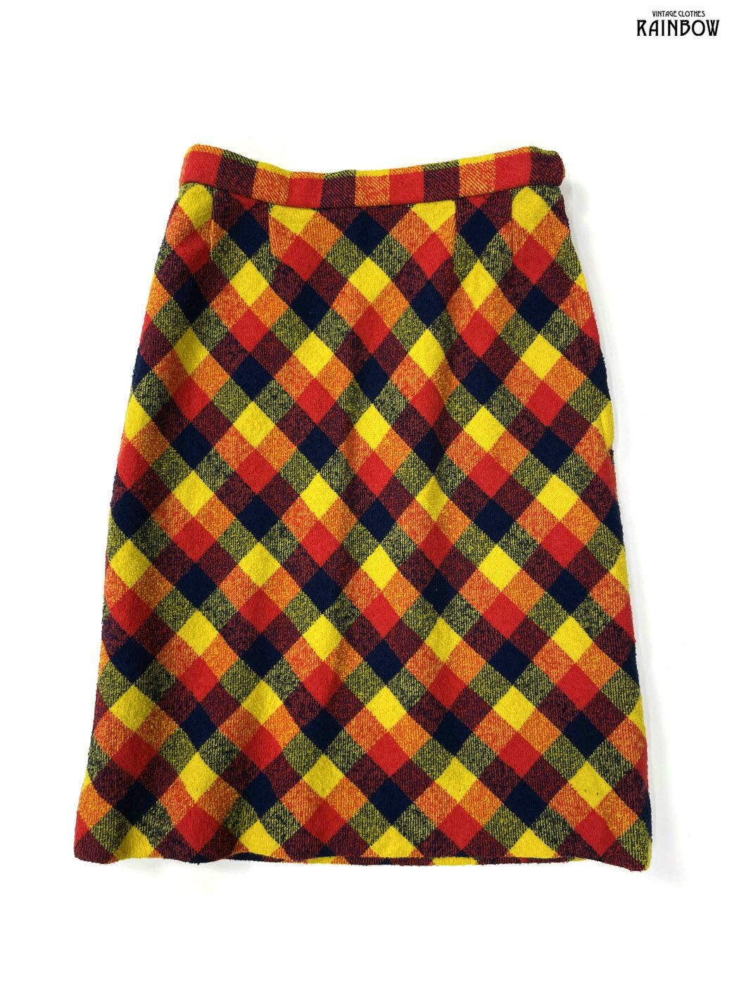 #スカート #ミニ丈 #タイト #オレンジ #チェック柄 #ウール #秋冬チェック柄スカート