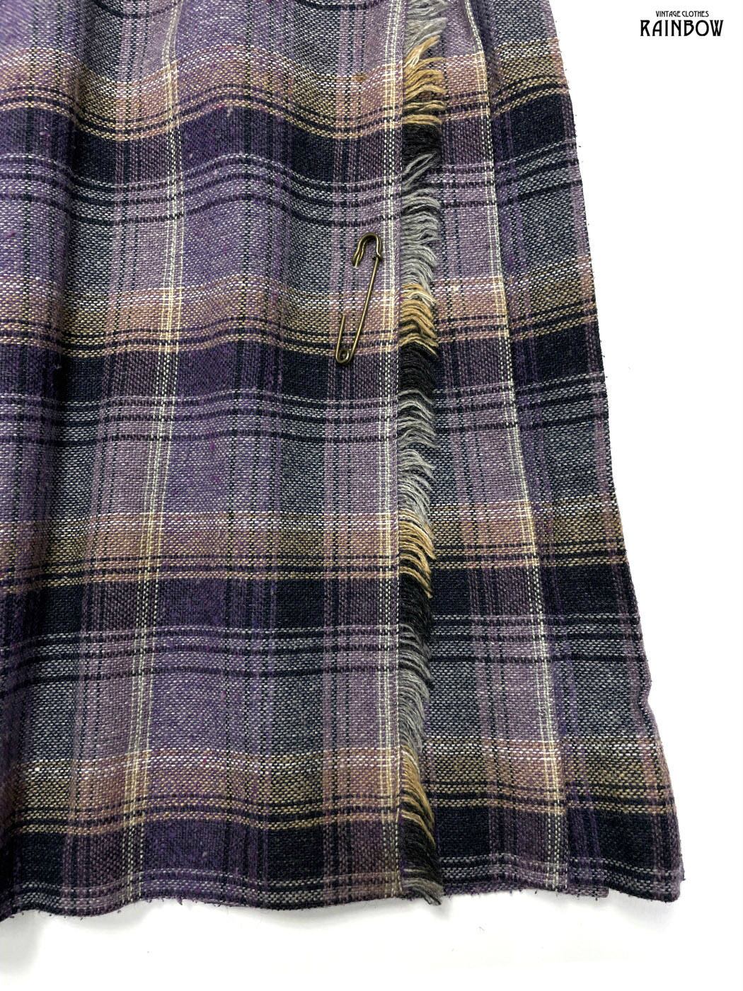 #スカート #膝丈 #紫 #チェック柄 #巻きデザイン #ウール #秋冬チェック柄スカート