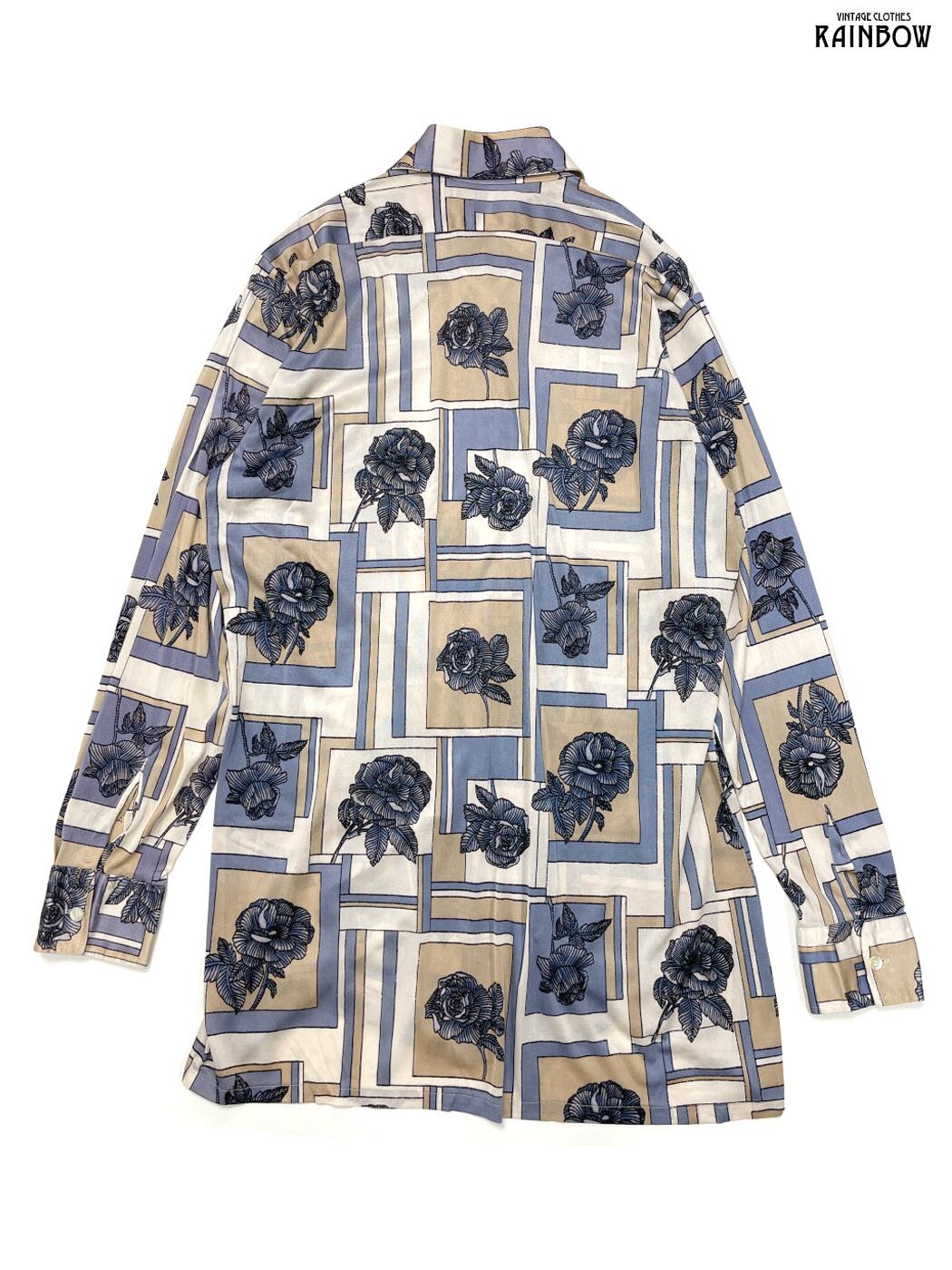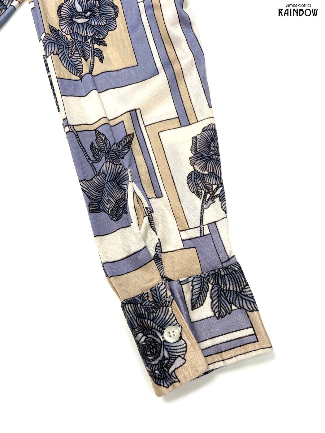 #ブラウス #シャツ #ロングスリーブ #ベージュ #花柄 #総柄 #前開き #クラシック #ナイロン #柄シャツ
