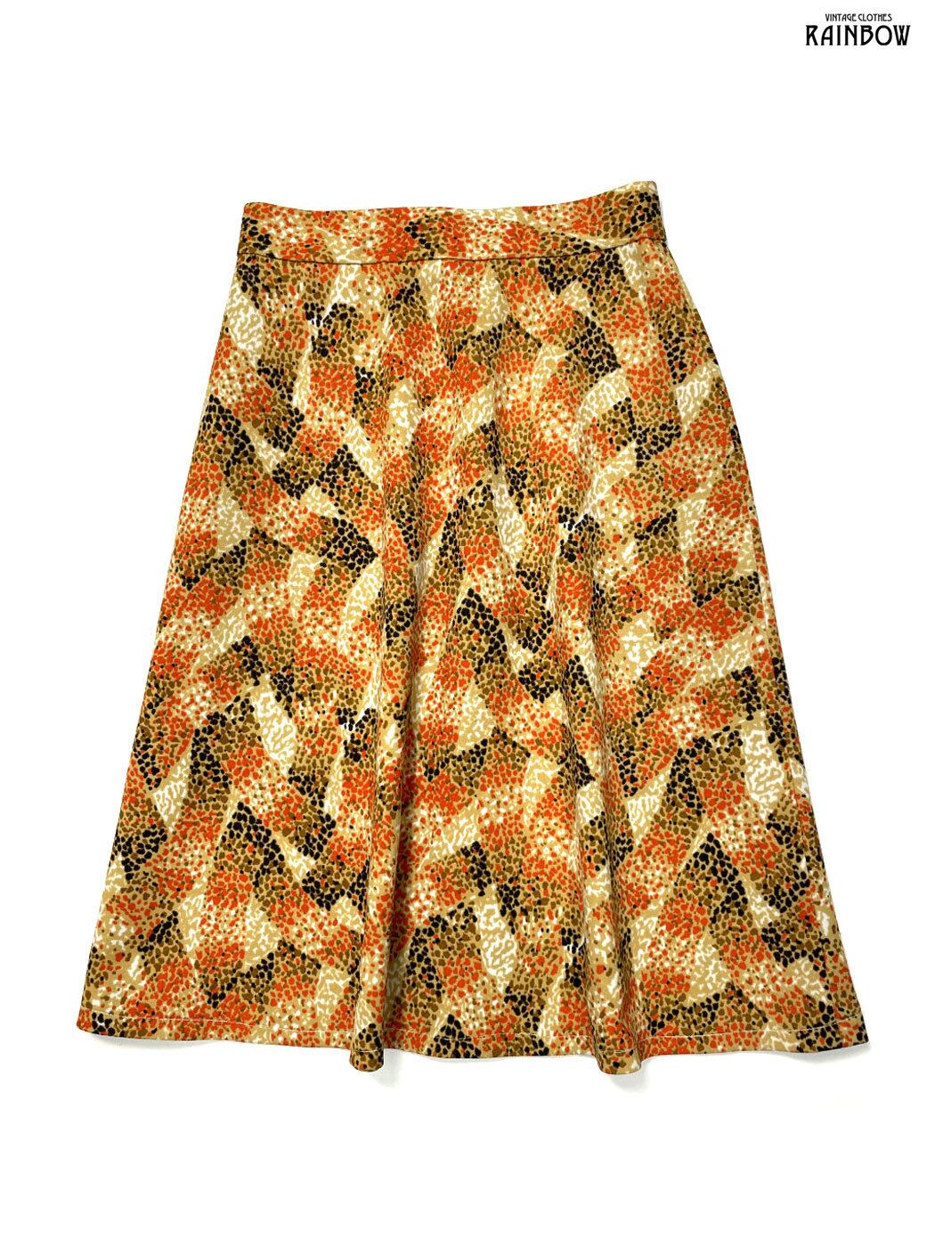 #スカート #膝丈 #オレンジ #総柄 #フランス製 #秋冬柄スカート