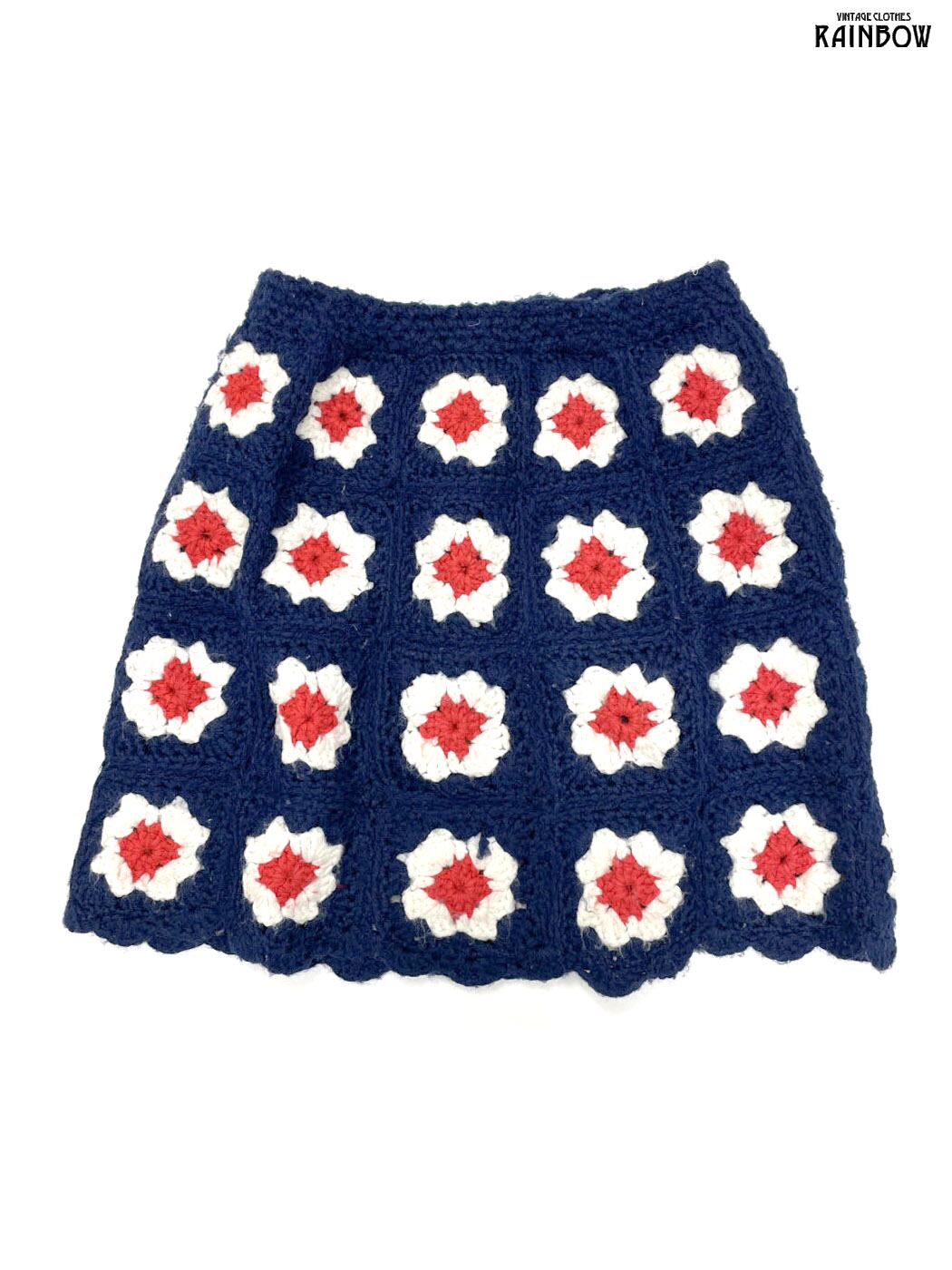 #スカート #ミニ丈 #タイト #ゴムウエスト #紺 #花柄 #クラシック #ニット地 #ニットスカート