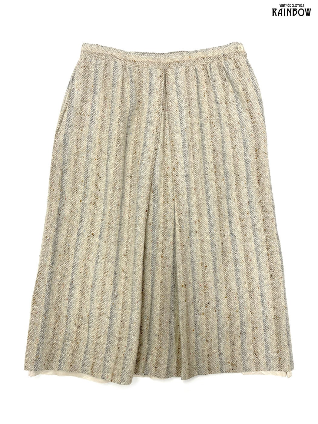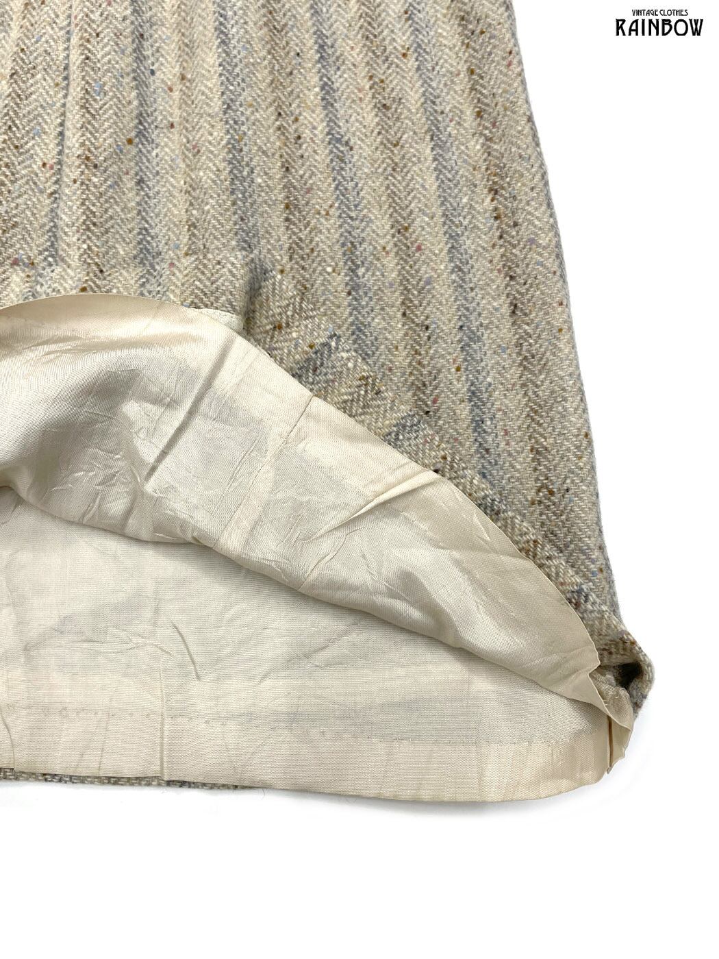 #スカート #膝丈 #フレア #ベージュ #総柄 #ナチュラル #ウール #ピュアウール #秋冬柄スカート