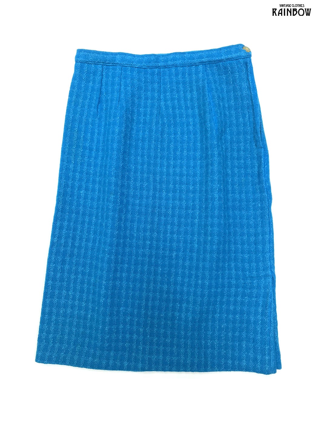 #スカート #膝丈 #ストレート #タイト #青 #無地 #ガーリー #ウール #秋冬無地スカート