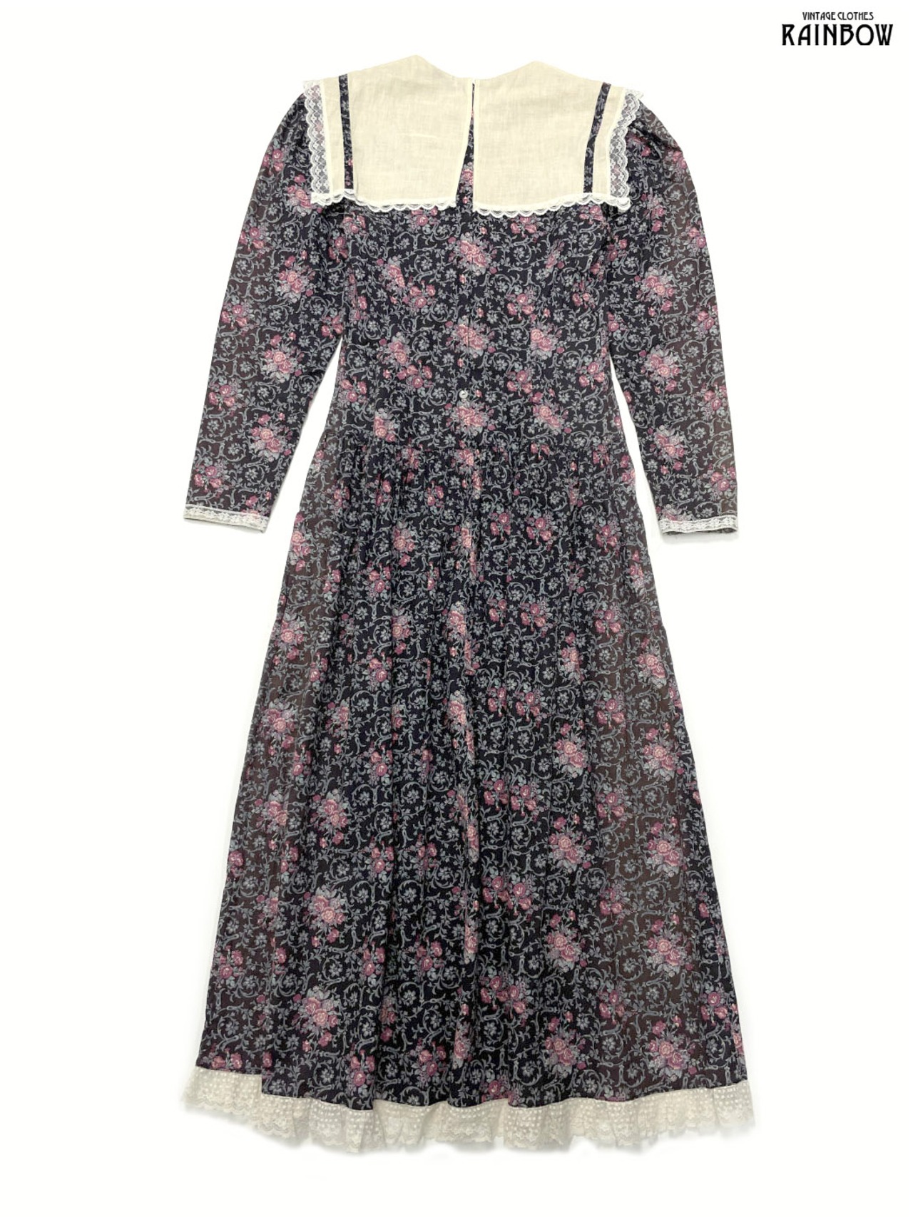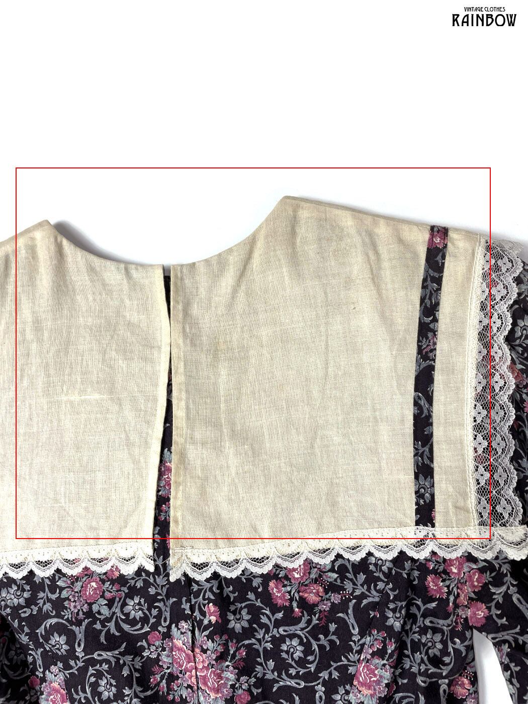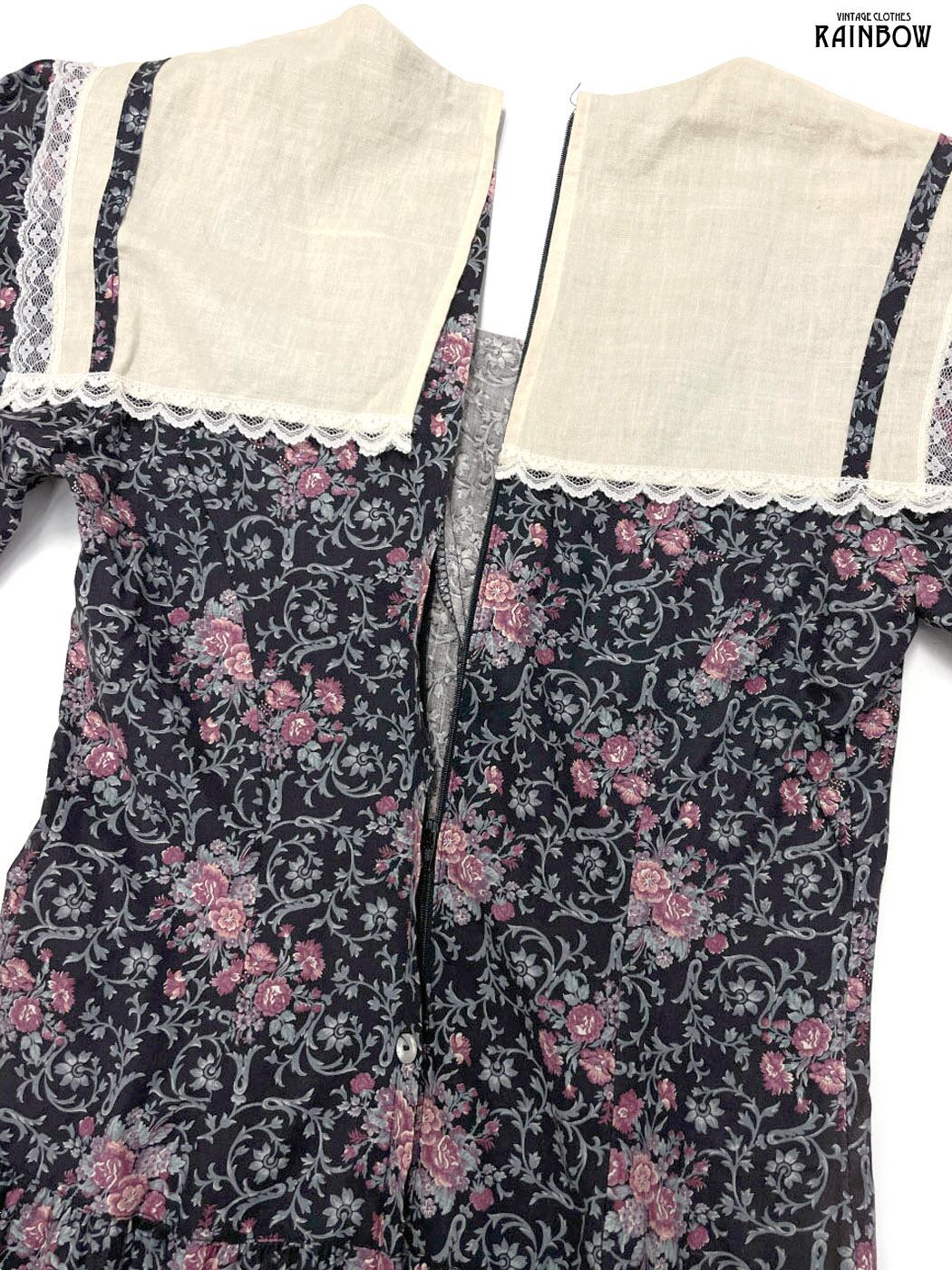 古着 GUNNE SAX ガニーサックス セーラーカラー レース 花柄 コットン ロング丈 長袖 ワンピース 茶 (otu2411030)