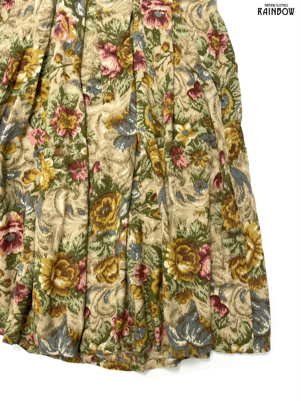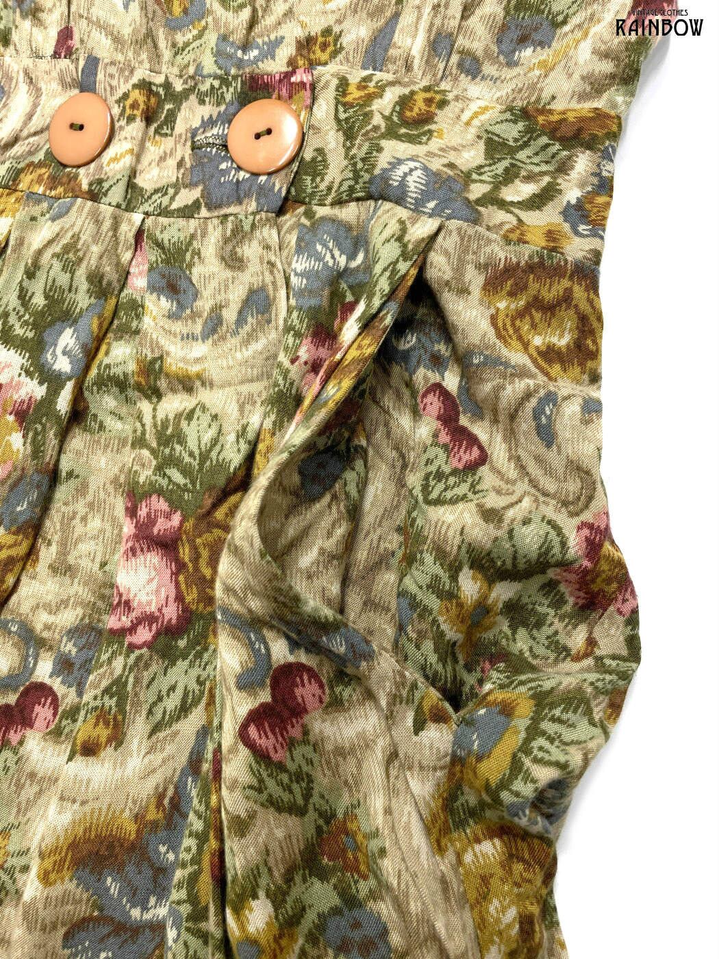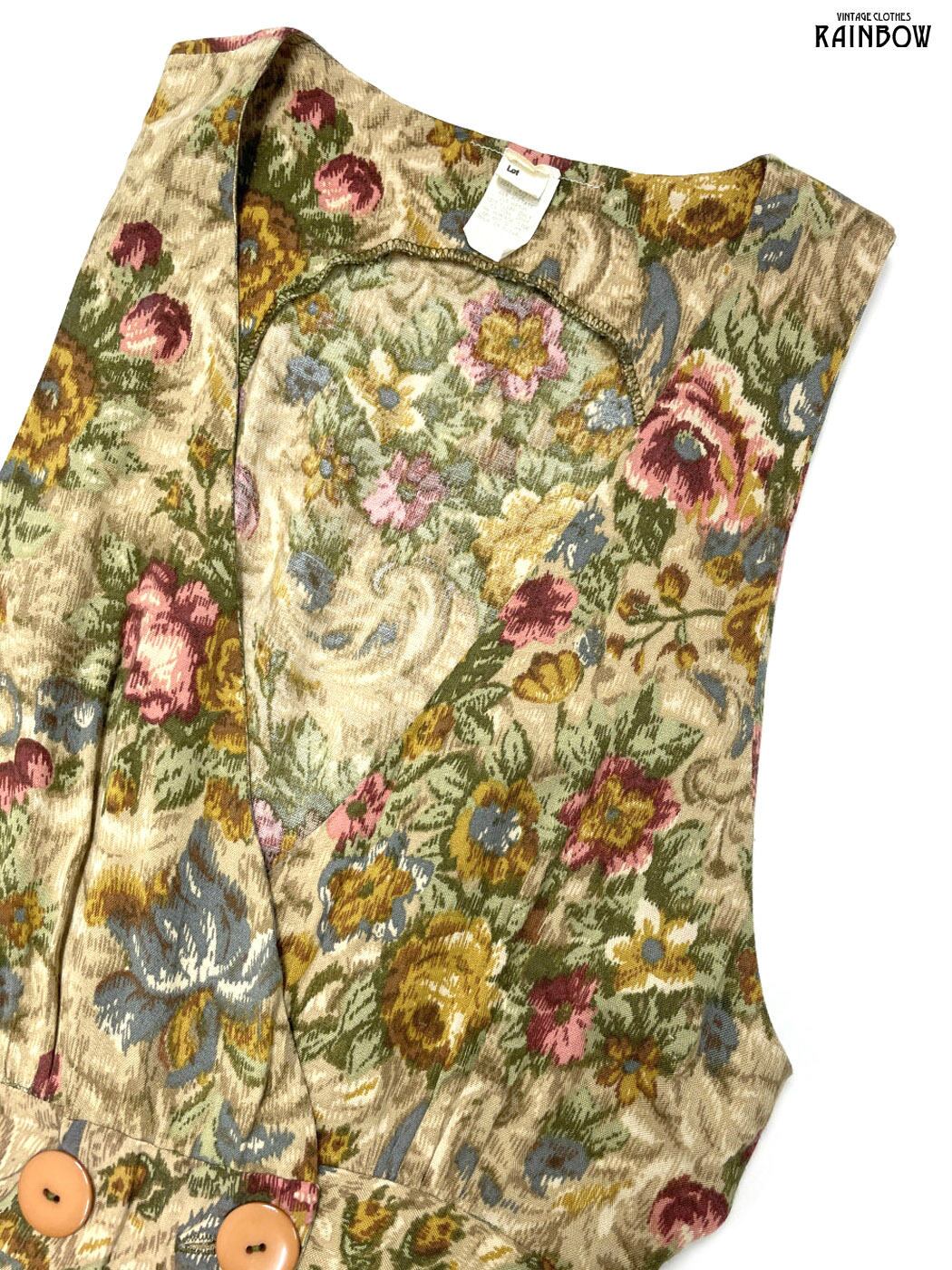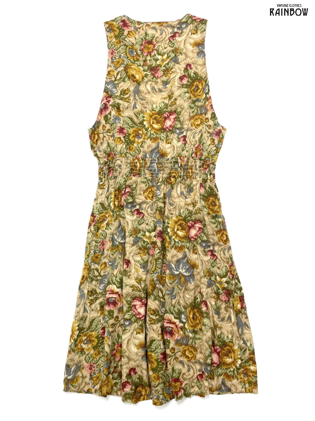 #ワンピース #ノースリーブ #ロング丈 #フレア #ウエスト切り替え #ベージュ #花柄 #アメリカ製 #クラシック #レーヨン #ノースリーブ花柄ワンピース