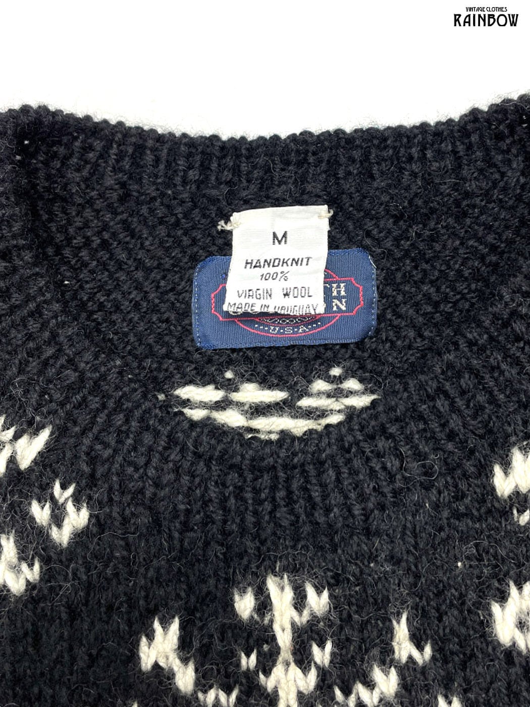 #ニット #セーター #ロングスリーブ #黒 #総柄 #アニマル #ウール #柄セーター