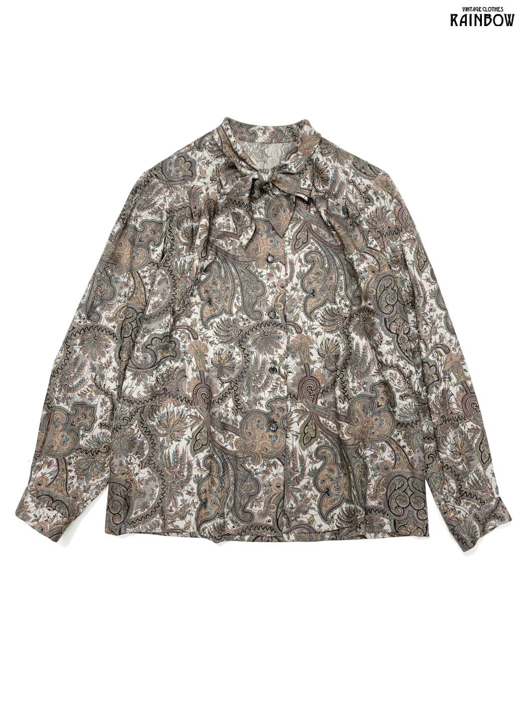 #ブラウス #bブラウス #ロングスリーブ #ベージュ #総柄 #エスニック柄 #リボン #前開き #ボウタイリボン #エスニック #コットン #エスニックシャツ